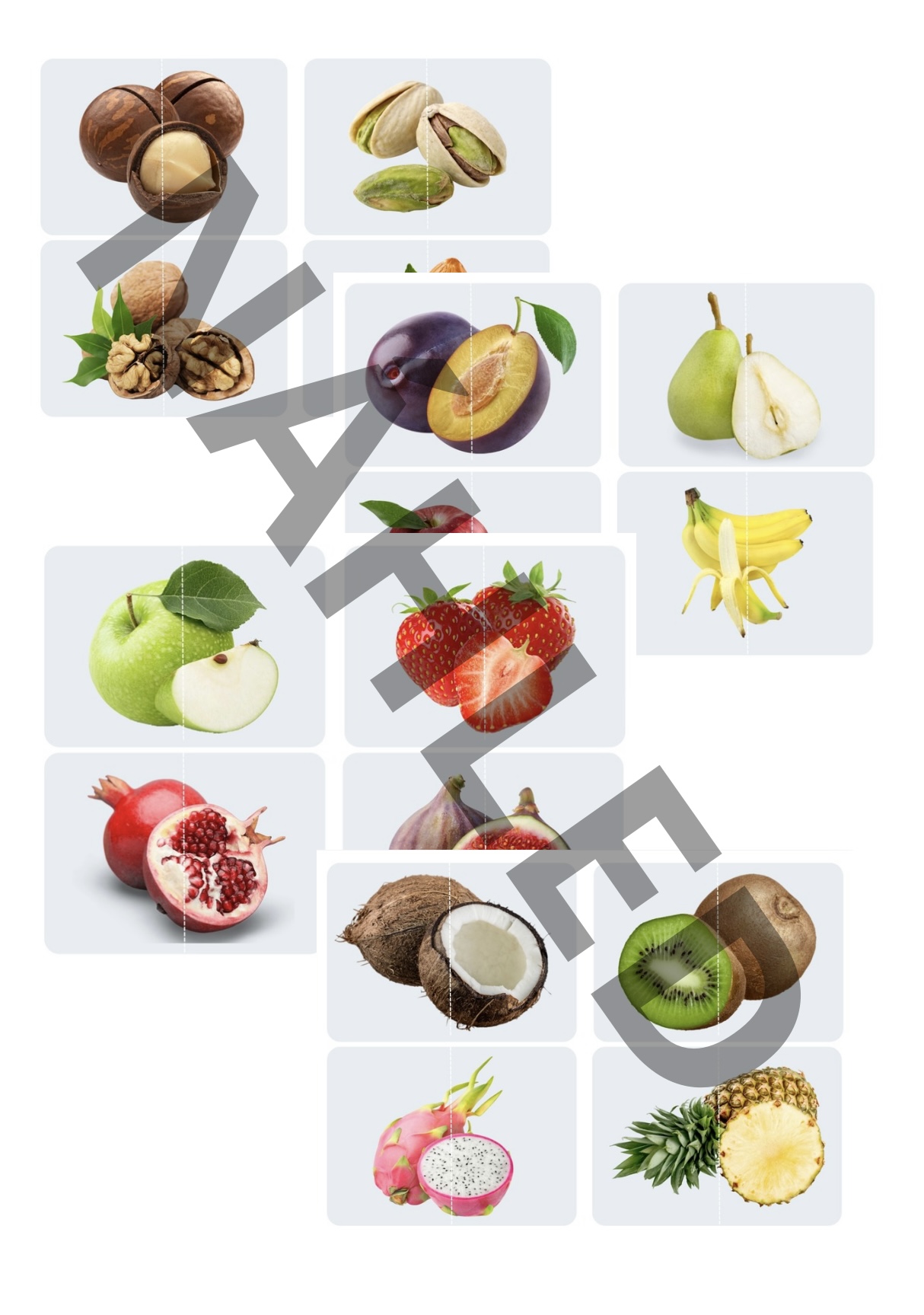 Soubor obsahuje : - celkem 40 karet s ovocem včetně exotického a ořechů - seznam ovoce na kartách Soubor je ve formátu