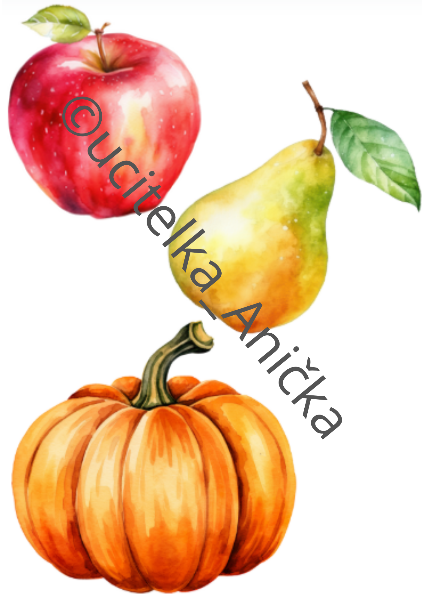 Obrázky ovoce a zeleniny na tisk a laminace. Skvělé pro seznámení dětí se vzhledem plodů, které rostou na zahrádce. Barevné, realistický ale zároveň dětské oko lákající vzhled. Lze vystřihnout po okrajích pro realistické tvary, pro mě osobně příjemnější než kartičky.