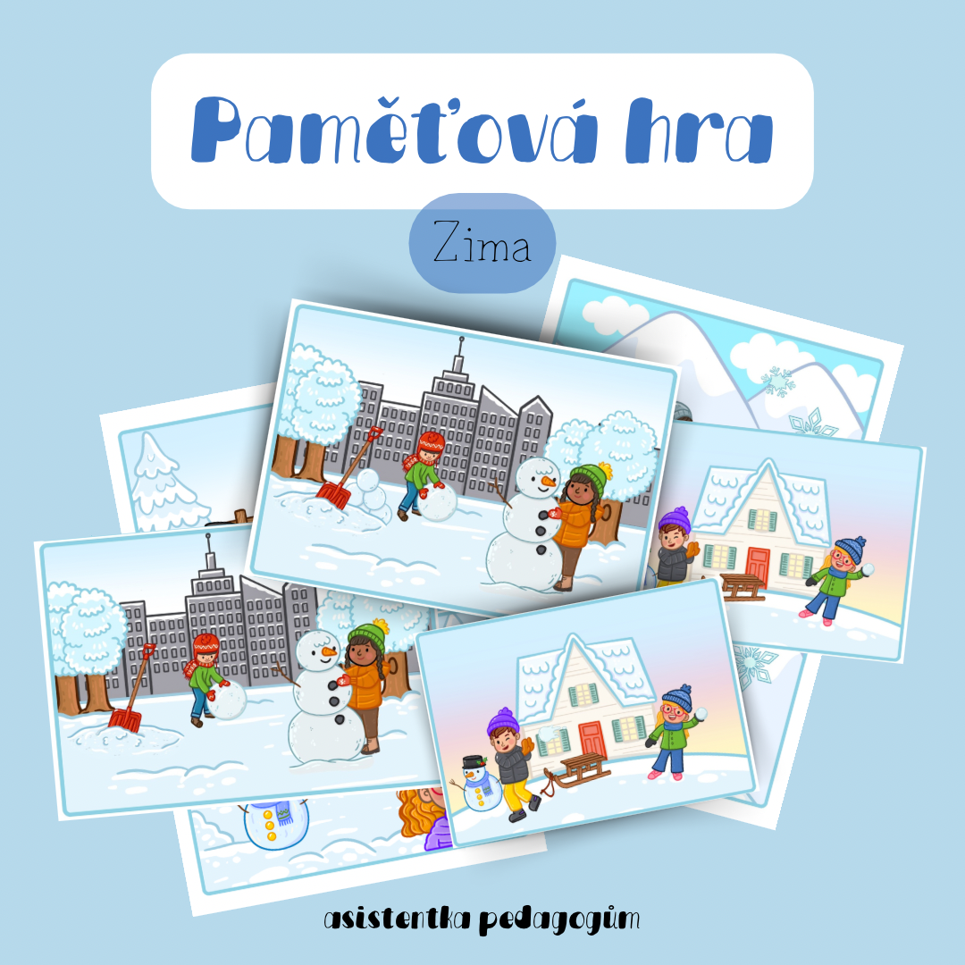 paměťová hra | paměťové dovednosti | zima | zimní aktivity MŠ | zrakové vnímání | soustředění | logické myšlení | didaktická hra PDF