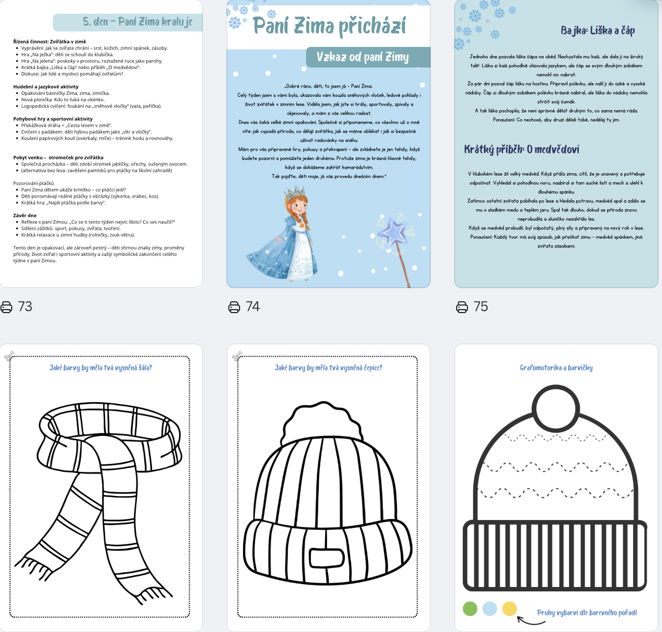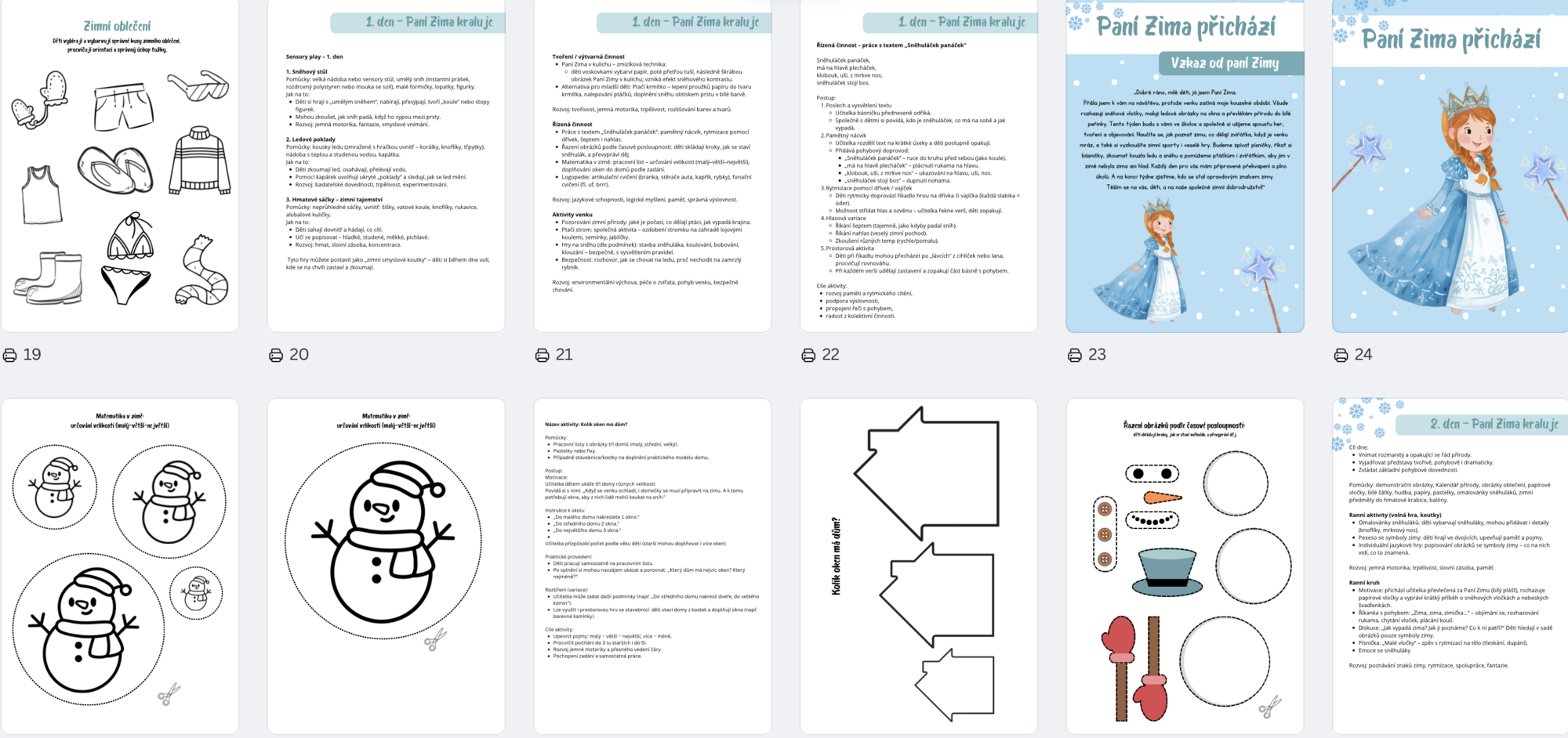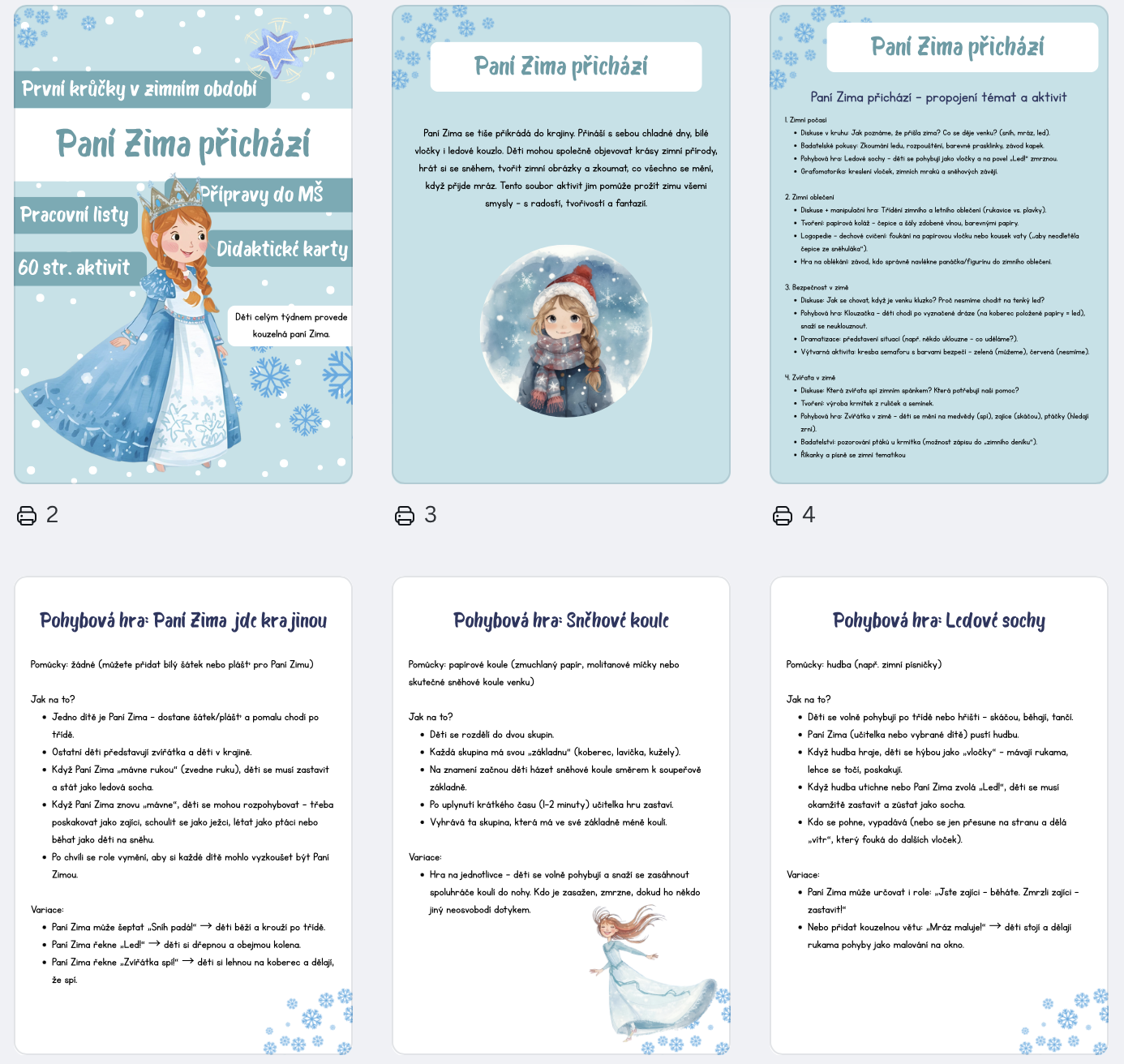 Soubor „Paní Zima přichází“ Vám usnadní plánování a přinese do zimního období ve školce spoustu radosti, tvořivosti a kouzelných chvil.