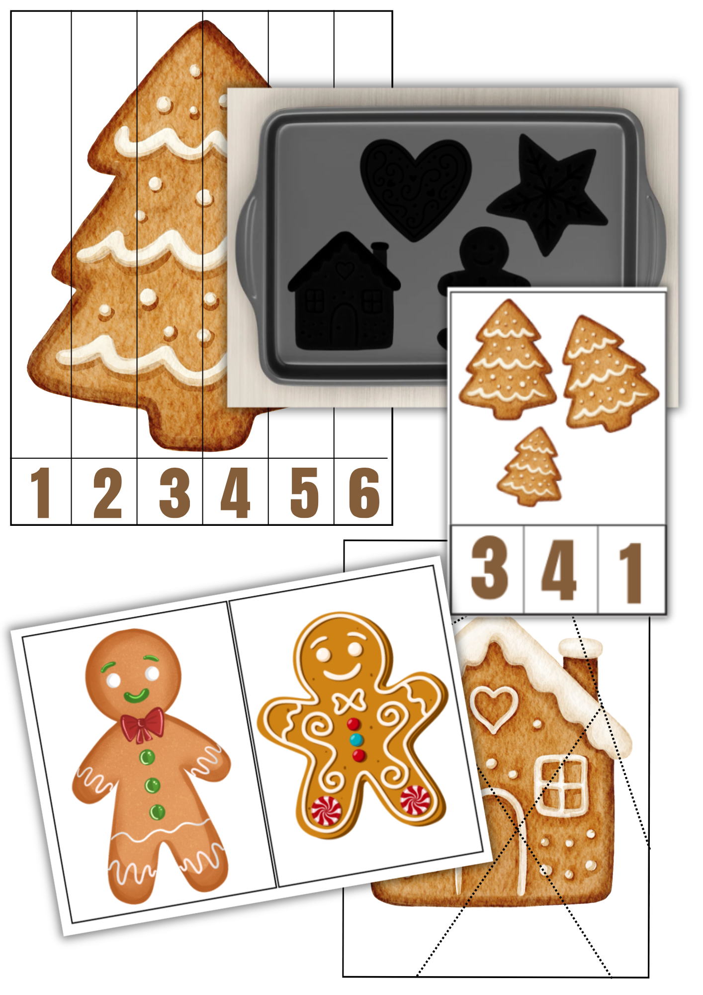 🔹 4 „plechy“ se stíny perníčků – dítě hledá správný tvar,
