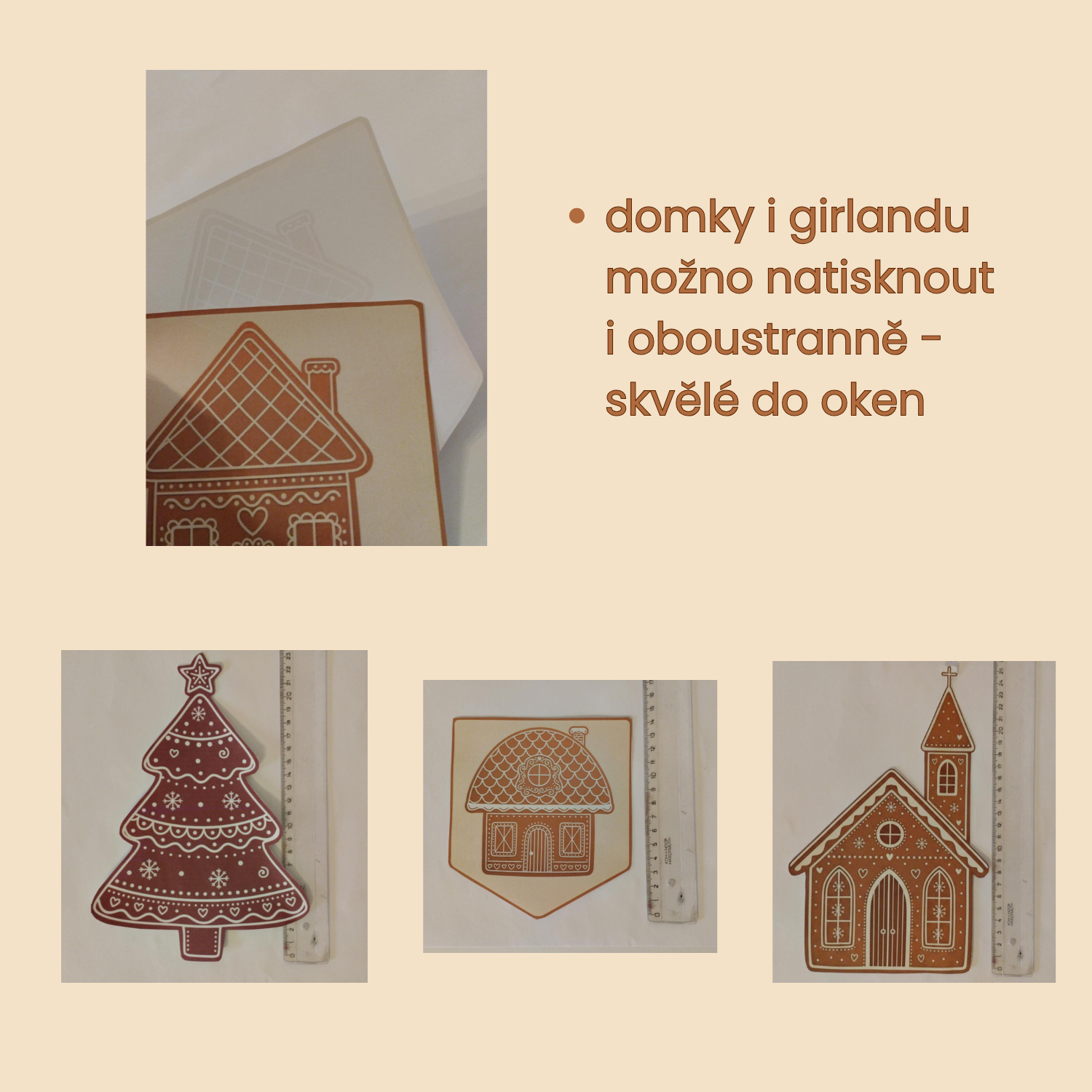 - praporky na girlandu (12 domečků, 2 andílci, 2 volné praporky k případnému dotvoření)