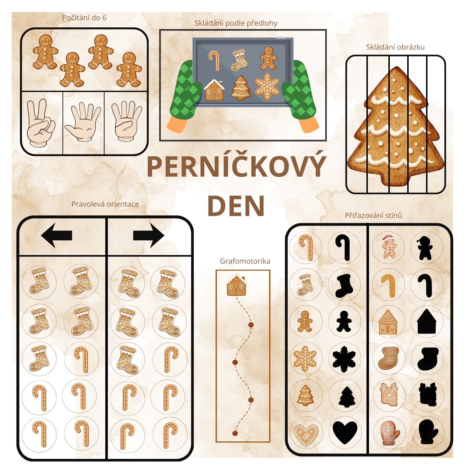 Tento vzdělávací materiál je zaměřený na rozvoj předmatematických dovedností, zrakového vnímání, prostorové orientace, jemné motoriky a kreativity u dětí. Vše je laděno do hravého perníčkového tématu.