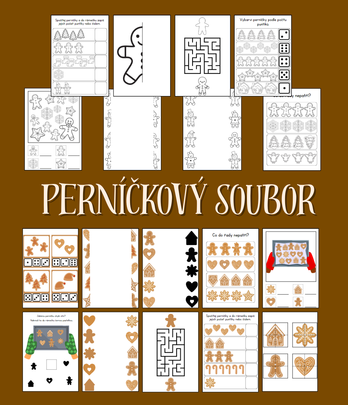 - Celkem 27 stran pracovních listů a aktivit s motivem perníčků