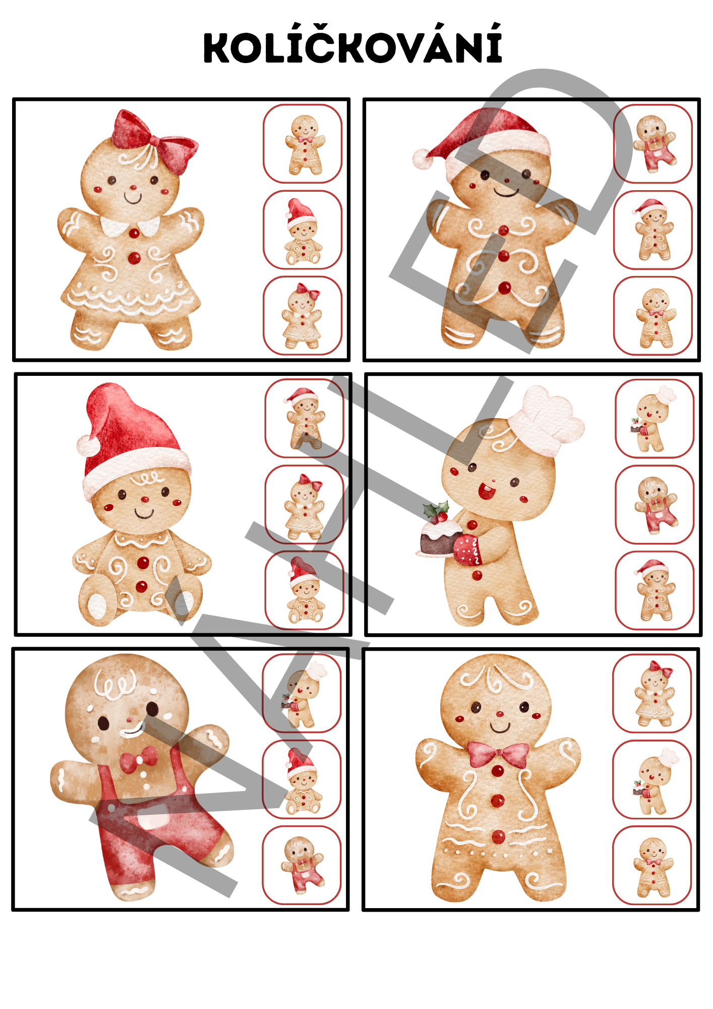 24 omalovánek s vánočními motivy v barevném rámečku s číslovkou, lze využít i jako adventní kalendář.