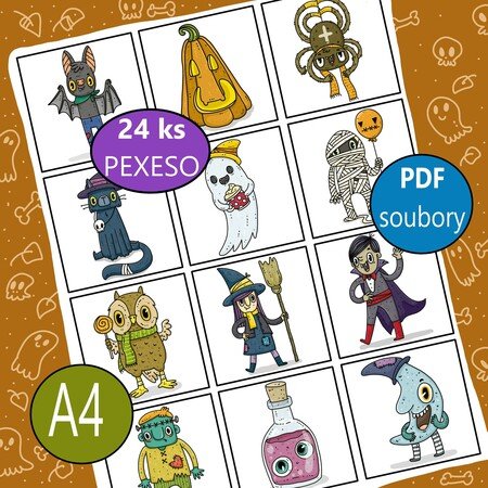 🎃 Autorské Halloween pexeso – 24 obrázků 👻