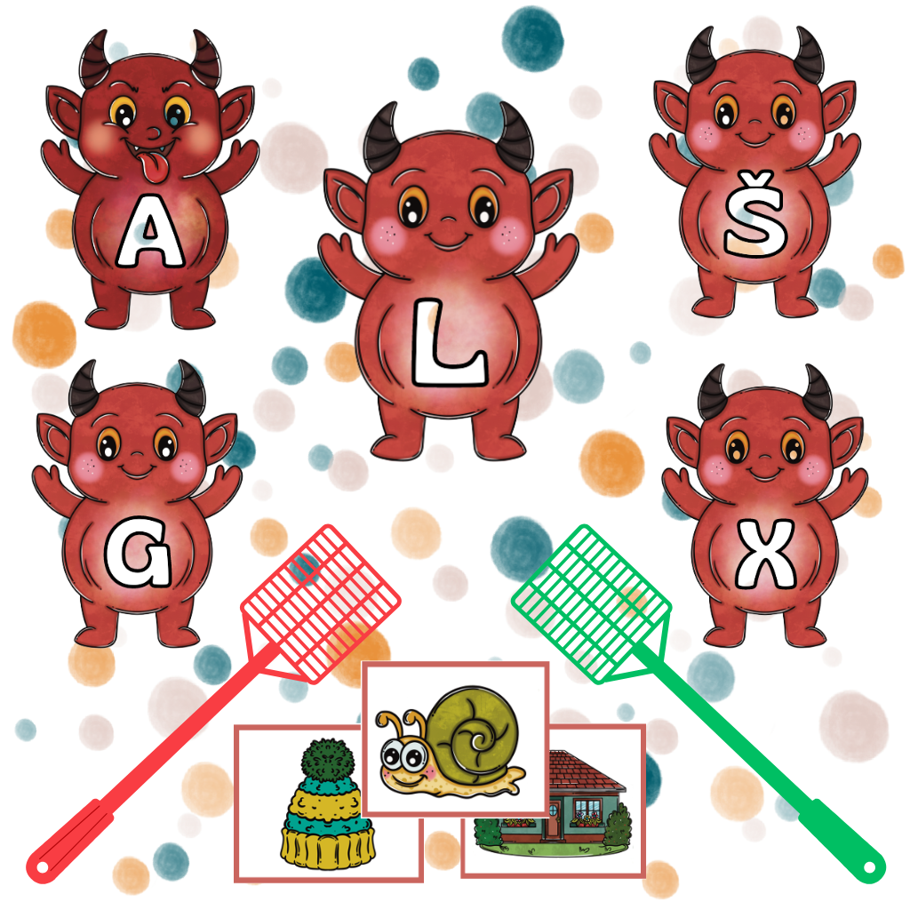 Plácni čerta je hravá aktivita, která dětem pomáhá zábavnou formou procvičit počáteční hlásky. Materiál obsahuje celkem 56 kartiček – 28 kartiček se zadáním (barevné obrázky) a 30 čertů, kteří znázorňují počáteční hlásky.