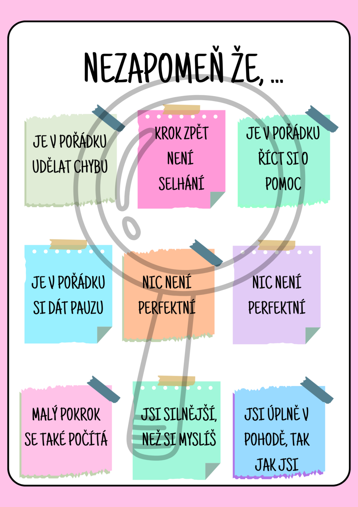 Plakáty jsou barevné, srozumitelné a vhodné jako výzdoba do každodenního života třídy. Pomáhají učitelům vytvořit prostředí, kde se děti cítí bezpečně, motivovaně a klidně – ideální doplněk k třídním pravidlům, preventivním aktivitám i každodenní praxi podporující wellbeing.