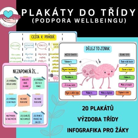 20 barevných, srozumitelných a motivačních plakátů – připomínají žákům, jak pečovat o své emoce, spolupracovat a zvládat náročné situace. Skvělý nástroj pro učitele, kteří chtějí vytvořit klidnější a pozitivní atmosféru ve třídě.