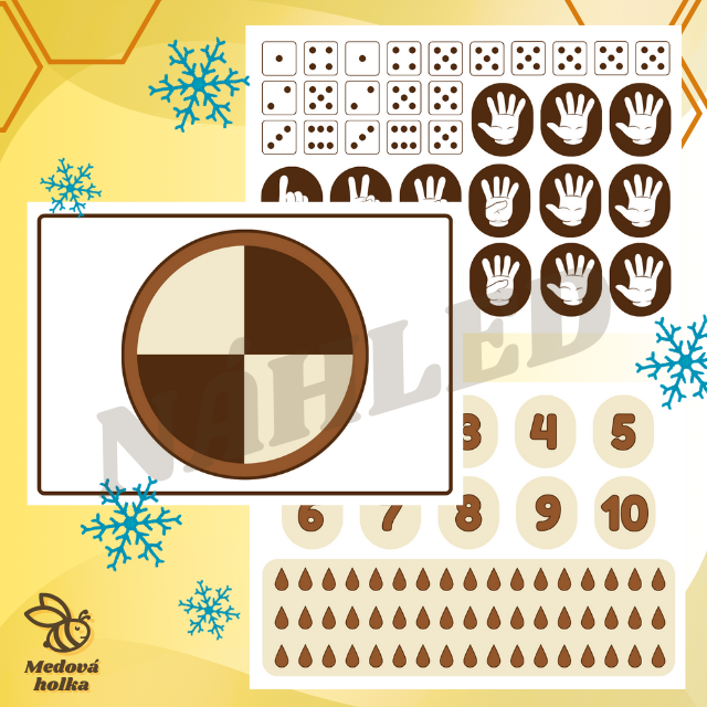 - 2 A4 - čísla, oříšky, prstíky a kostky na vystřižení, pokud byste chtěli koláče sestavovat sami