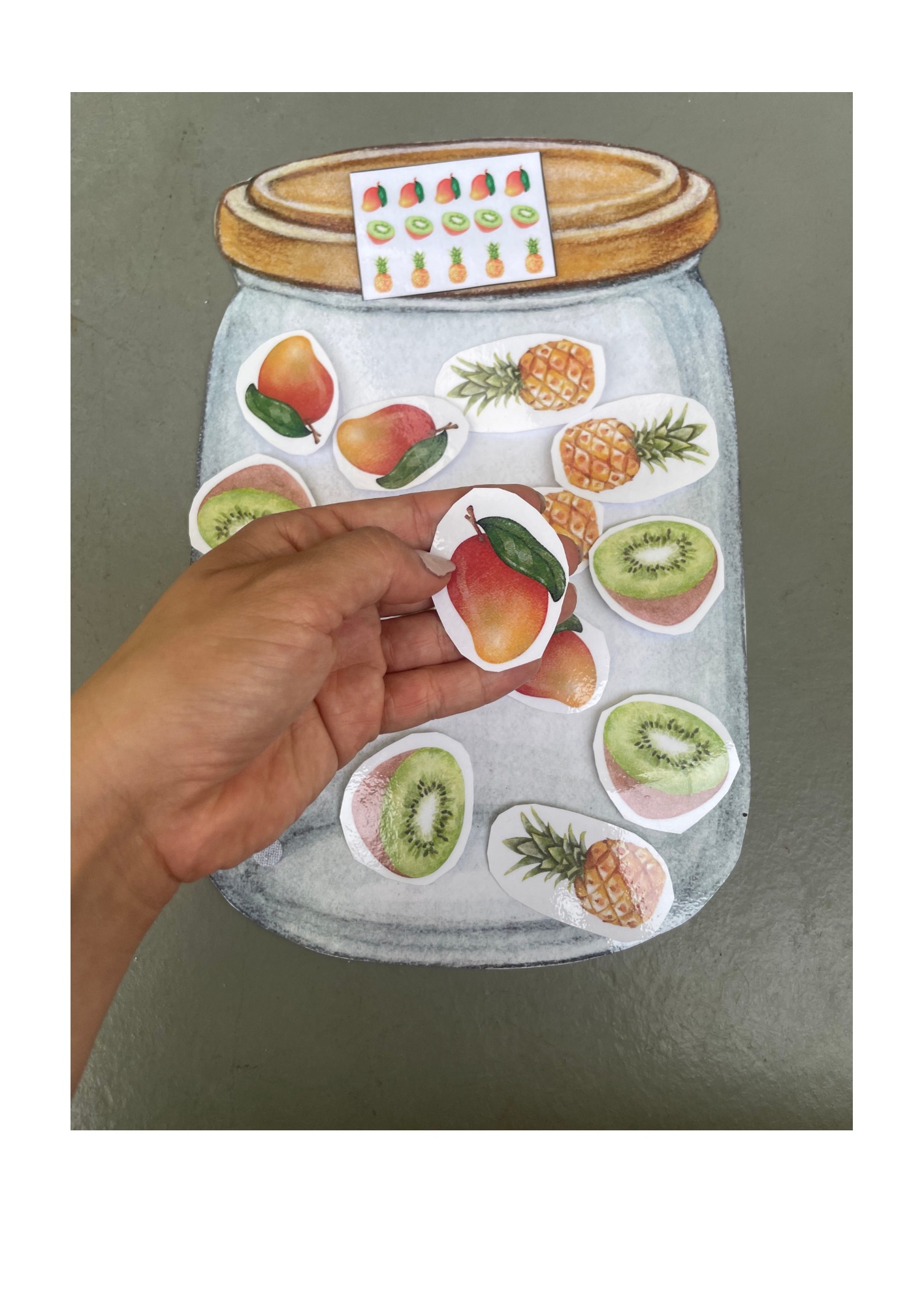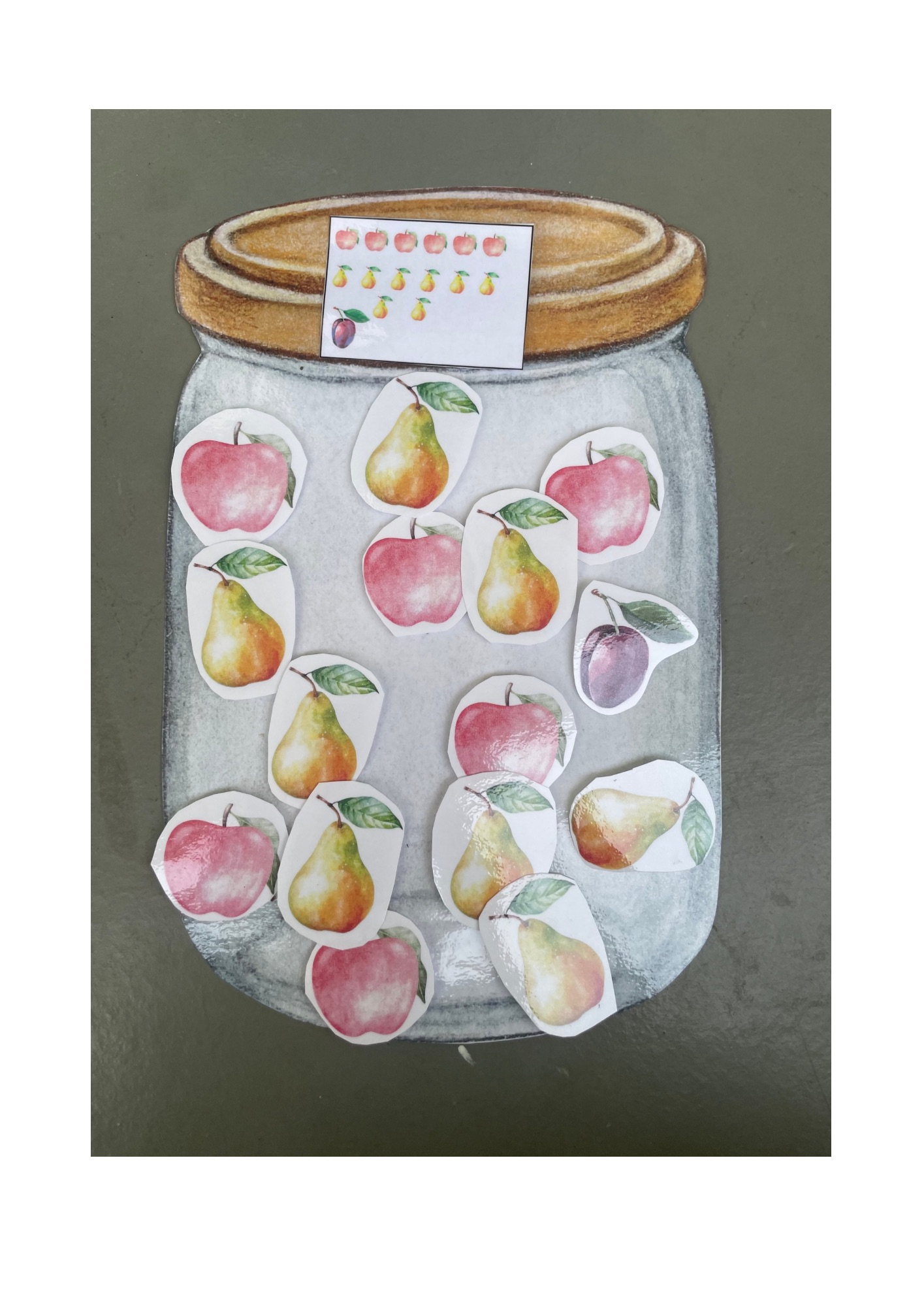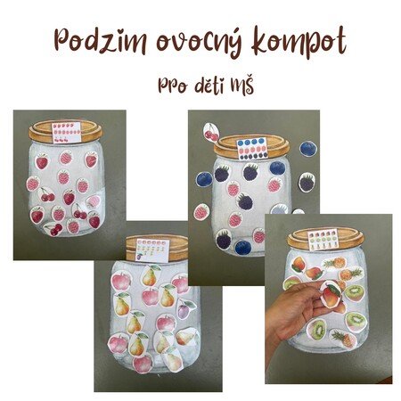 Každá sklenice má svůj vzorek ovocného kompotu – obrázek s druhem ovoce, které do ní patří. Úkolem dětí je:
