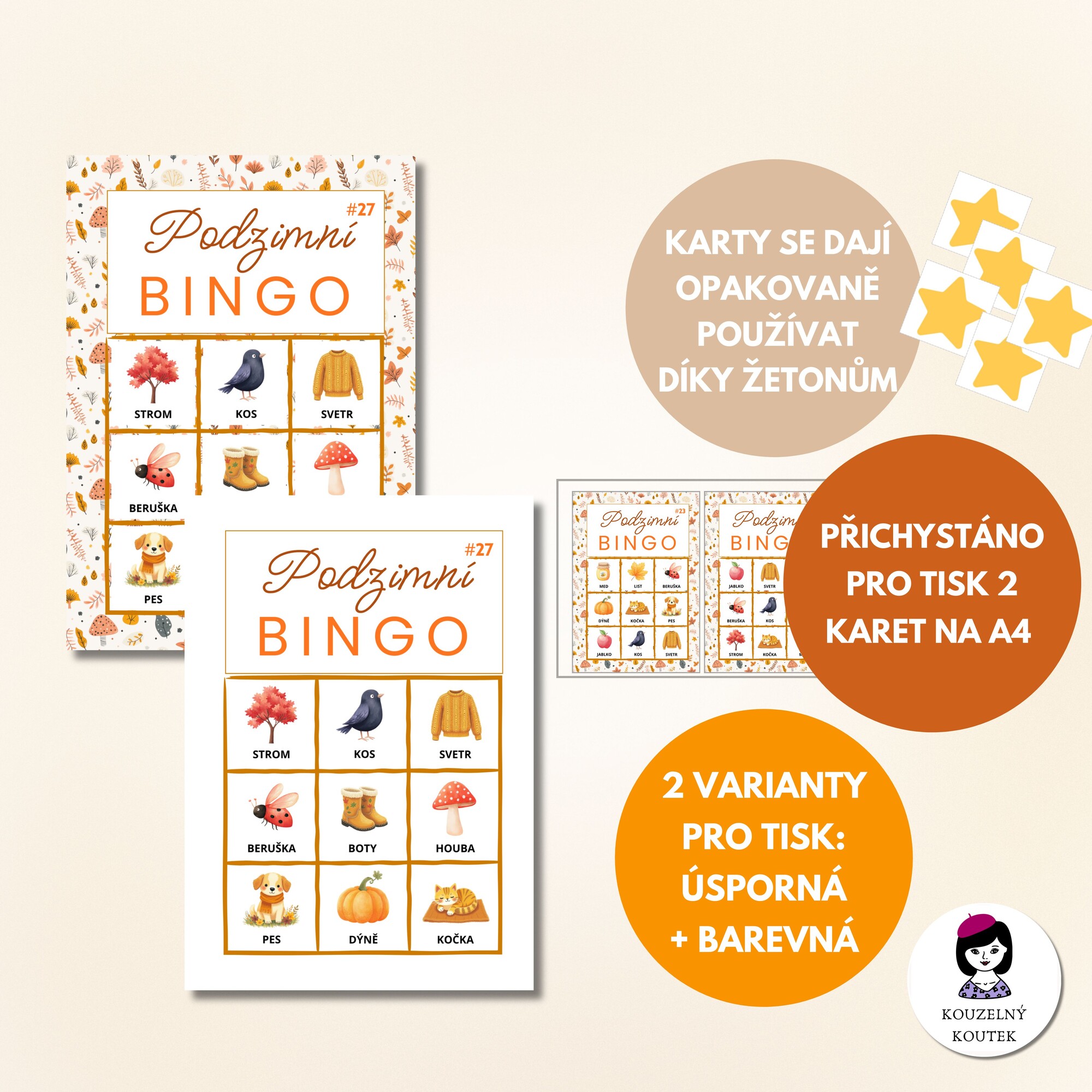 ⭐díky žetonům lze bingo karty používat stále dokola