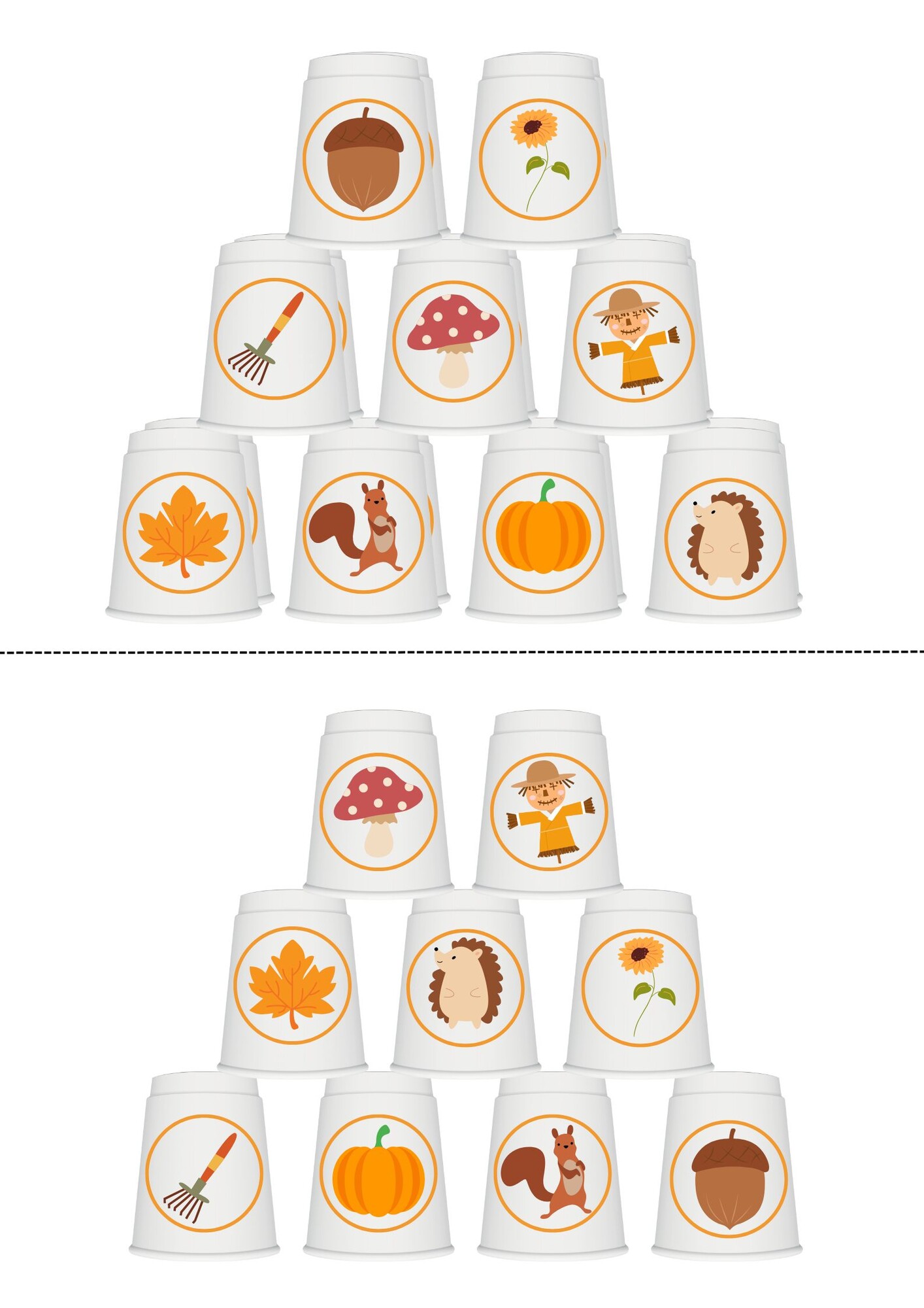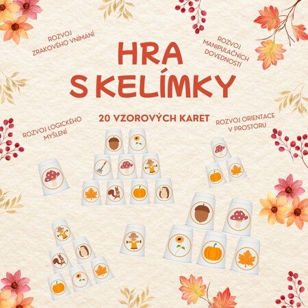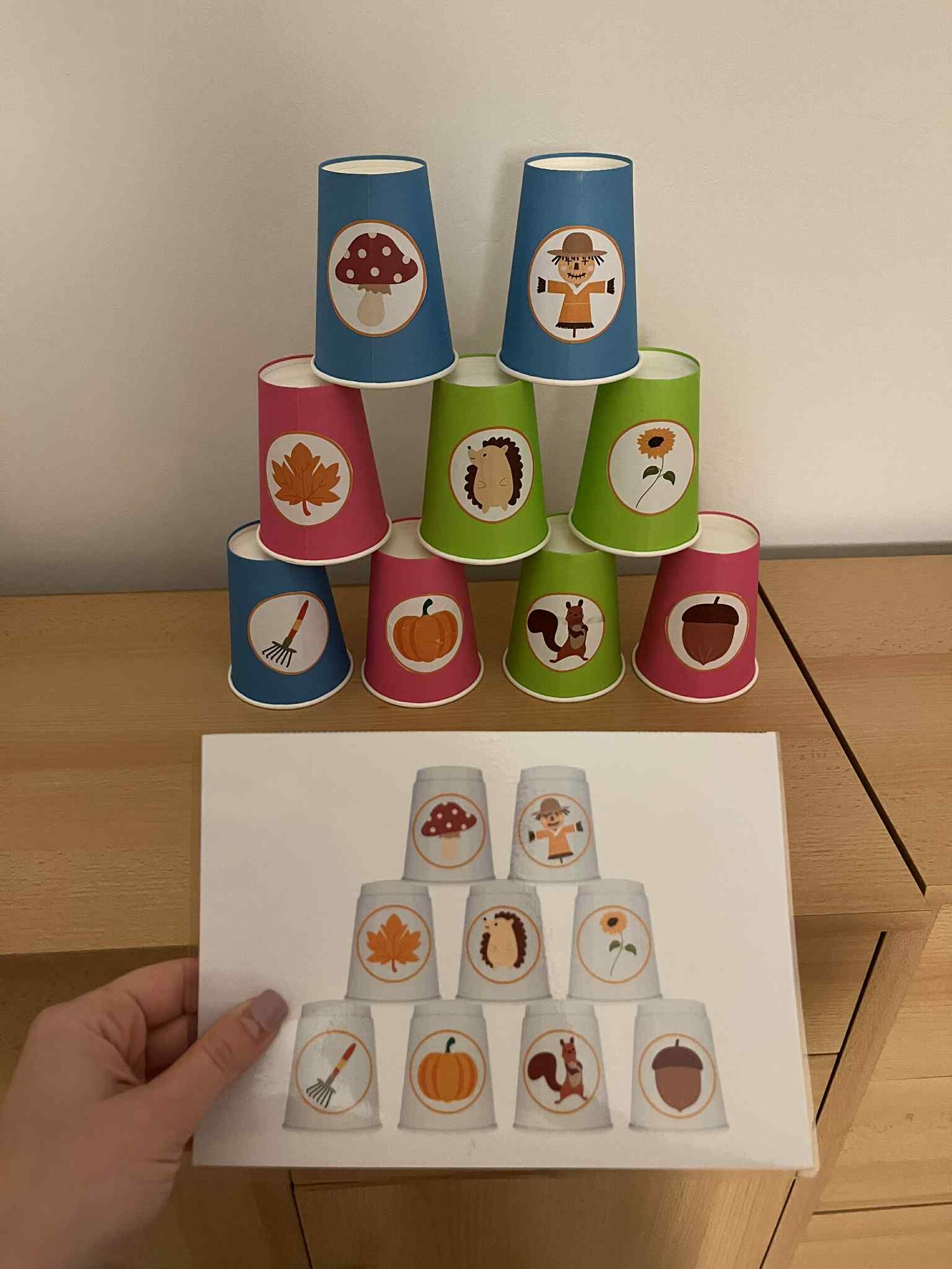 5. Hra s kelímky může začít! Dejte si před sebe jednu vzorovou kartu a podle vzoru sestav kelímky.