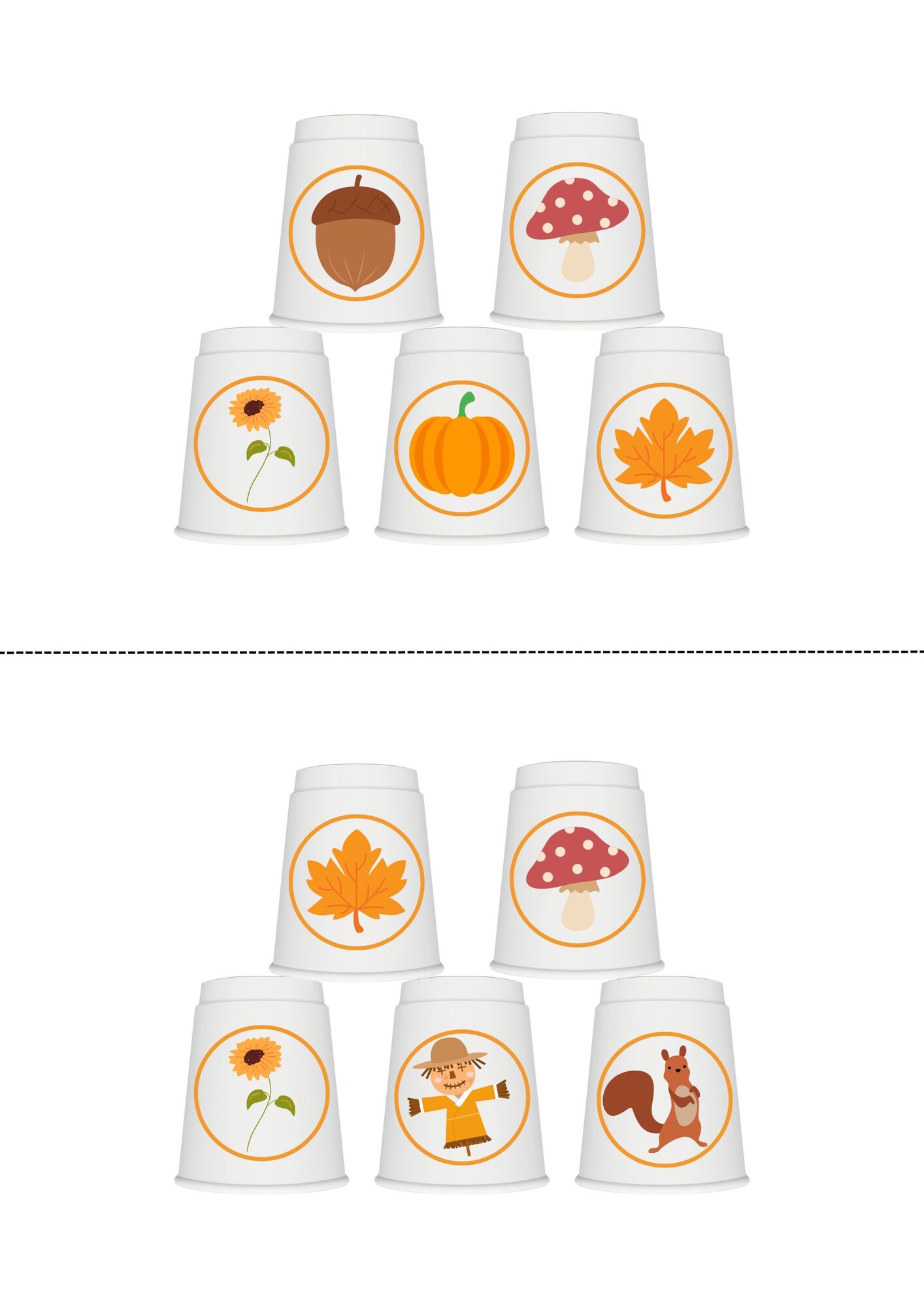 1. Pro hru potřebujete 9 plastových kelímků, oboustrannou lepící pásku nebo jiné lepidlo pro uchycení obrázků na kelímek.