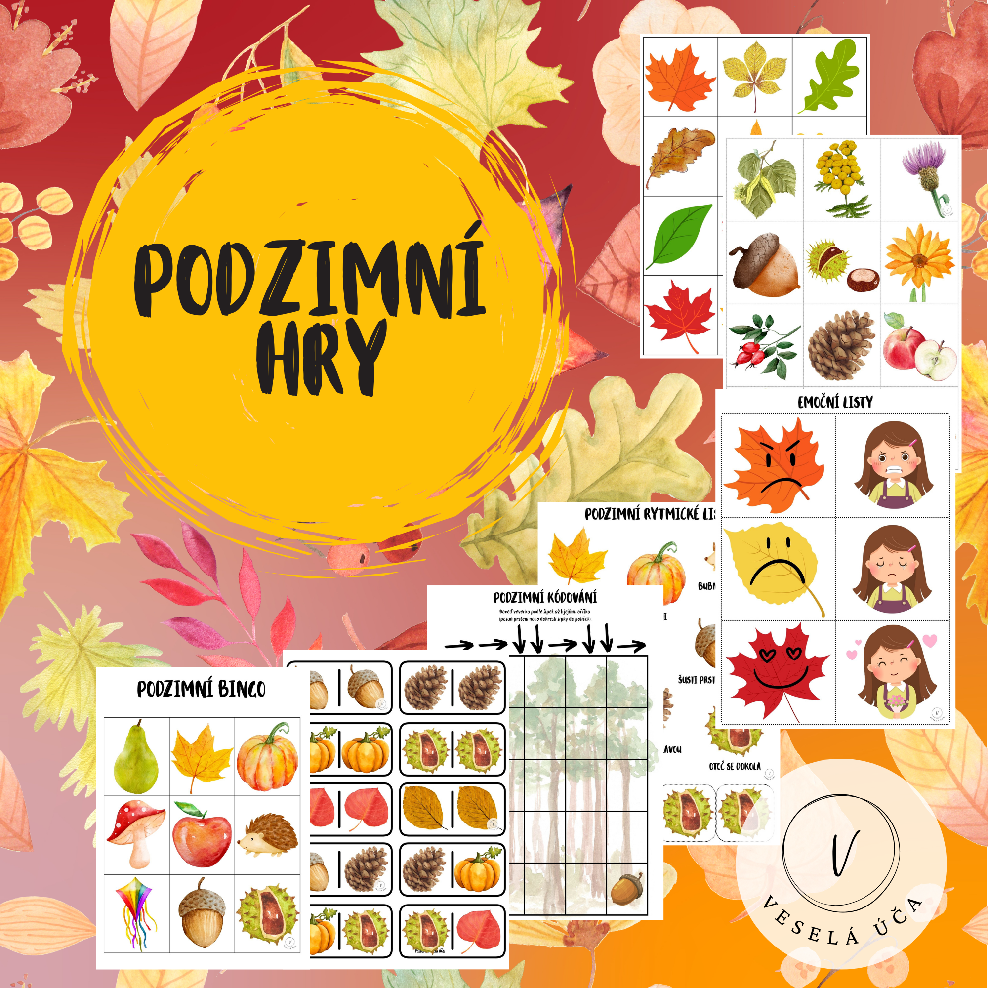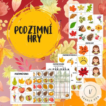 - Podzimní bingo – hrací karty s podzimními obrázky, součástí jsou tahací kartičky; vhodné i do skupinové hry.