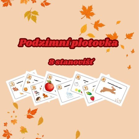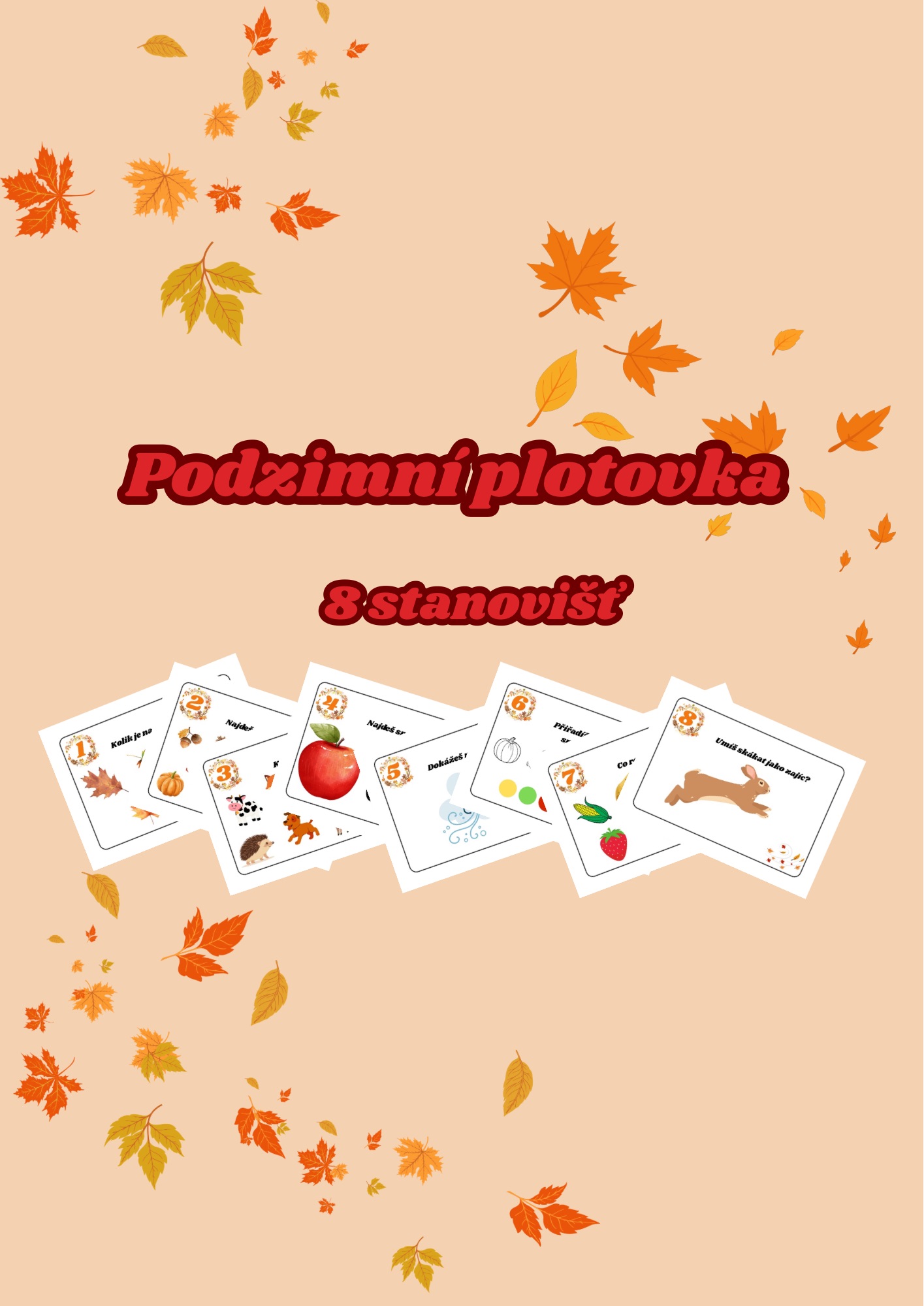 Zpestřete dětem podzimní dny zábavnou stezkou! Plotovka obsahuje 8 stanovišť s úkoly, které snadno pověsíte na plot, stromy nebo rozmístíte na zahradě školky. Děti se hravou formou učí poznávat podzimní přírodu, barvy, ovoce i zeleninu, napodobují zvířátka a procvičují počítání.