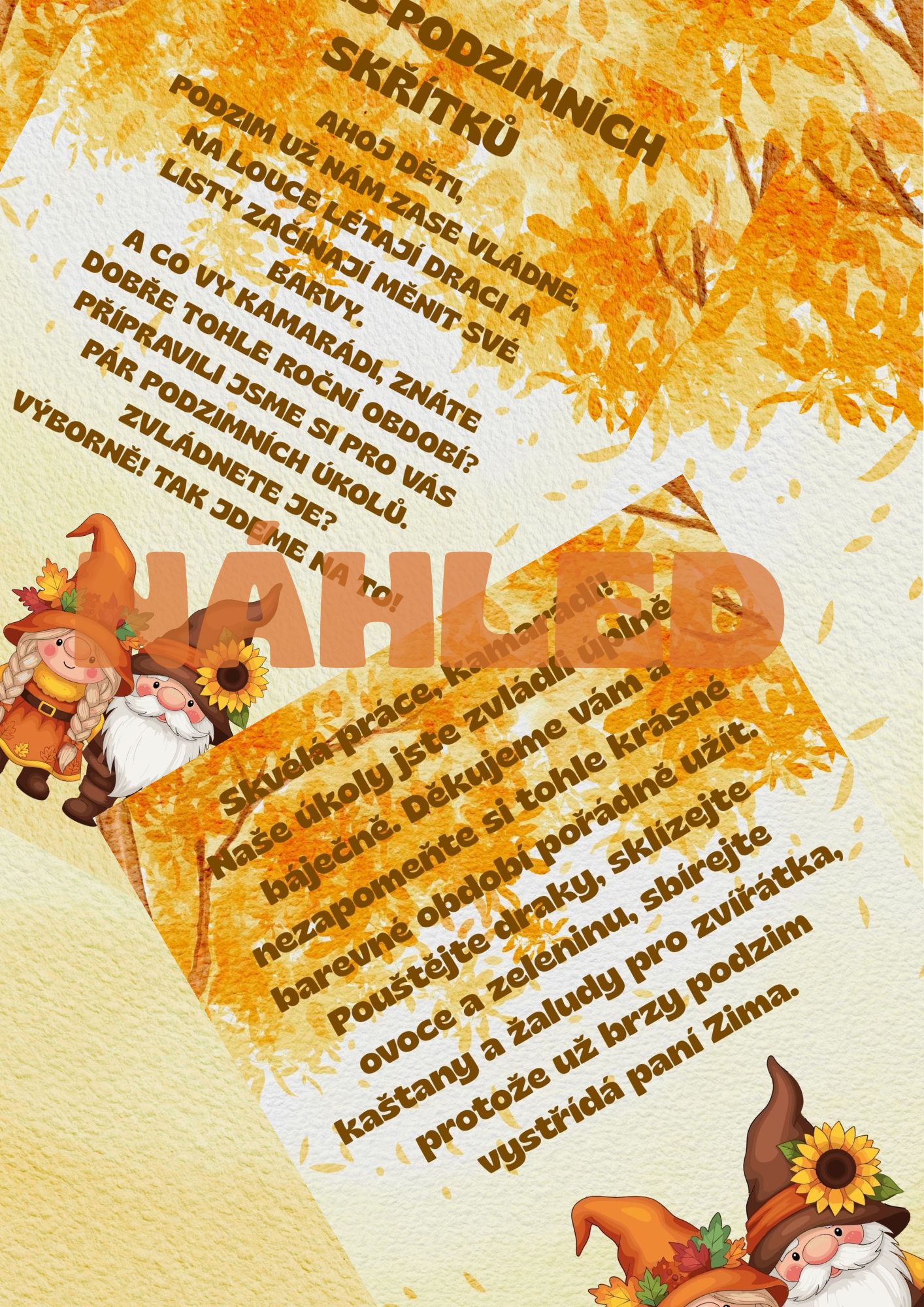 Podzimní plotovka vytvořena pro rodiče a děti, kteří si ji mohou splnit při příchodu či odchodu z MŠ. Skvěle poslouží také při výchovně-vzdělávacích aktivitách přímo ve třídě, na zahradě MŠ či v jejím okolí. Úkoly byly vytvořeny tak, aby vyhovovaly všem věkovým skupinám (3-7let).