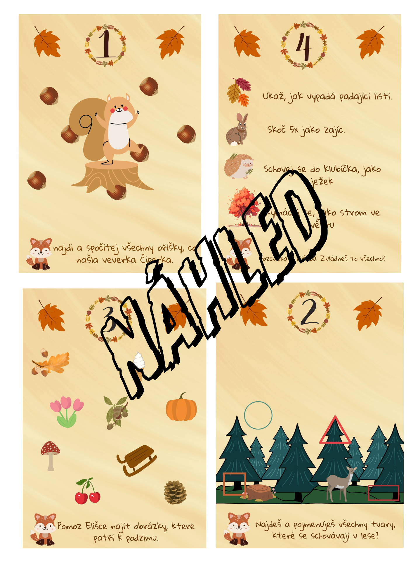 Vydejte se s dětmi na kouzelné podzimní dobrodružství! Plotovka obsahuje 10 hravých stanovišť, kde děti plní různé úkoly – hledají stíny, poznávají podzimní barvy, počítají, hádají, pohybují se jako zvířátka a objevují kouzla podzimu.