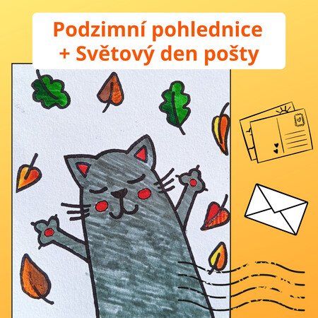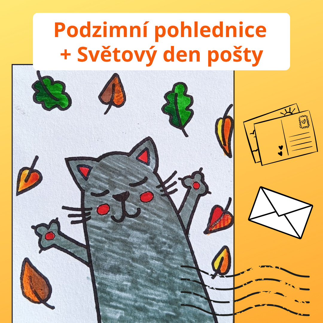 Předpřipravené šablony 12 podzimních pohlednic můžete využít ke Dni pošty (9. 10.), jako kreativní aktivitu ve třídě nebo jen tak pro radost. Stačí je vytisknout, vybarvit a poslat.
