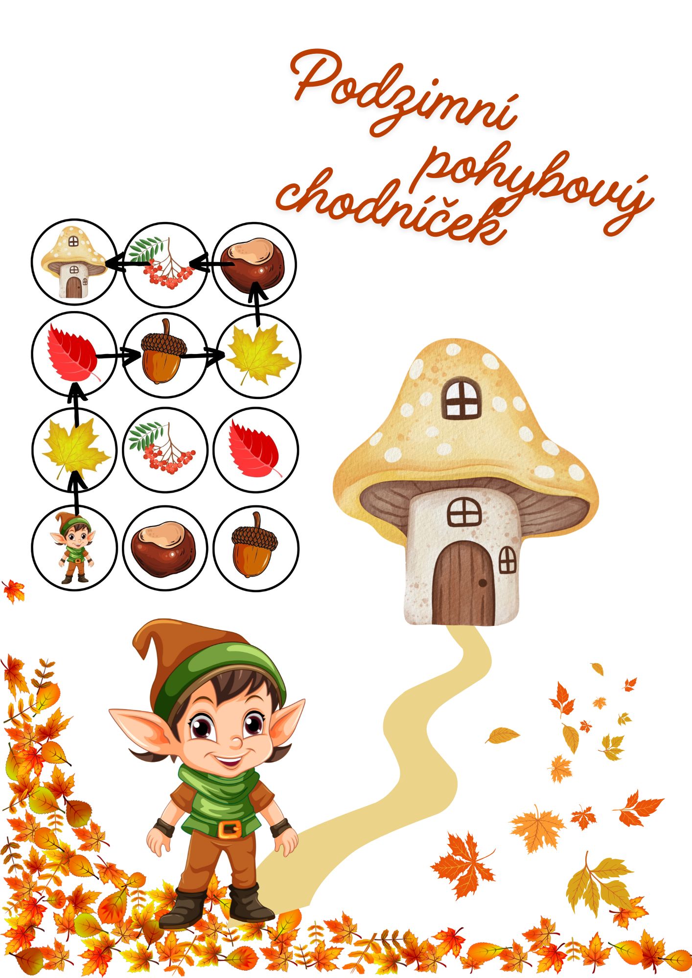 Podzimní pohybový chodníček - doveď skřítka Podzimníčka domů