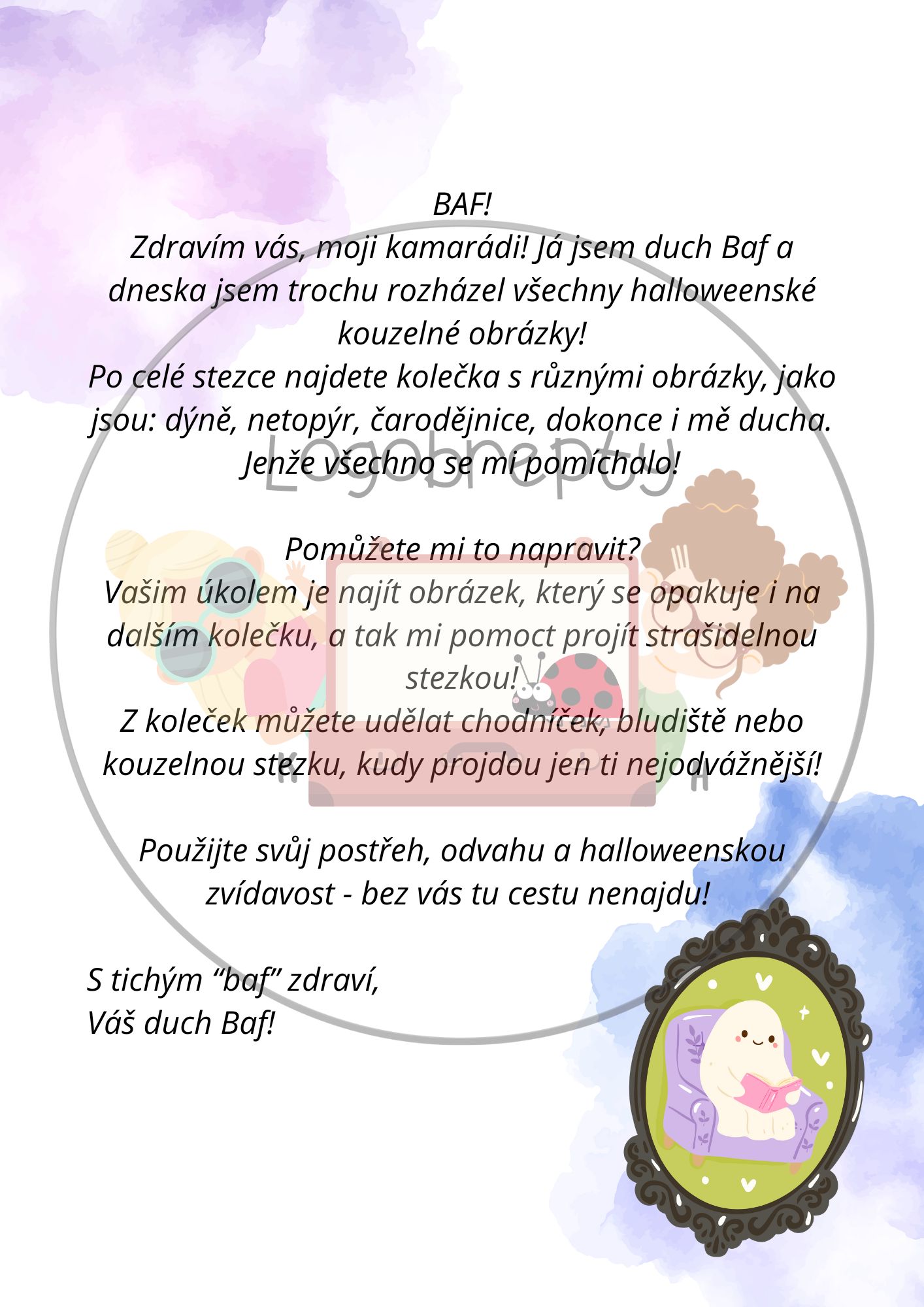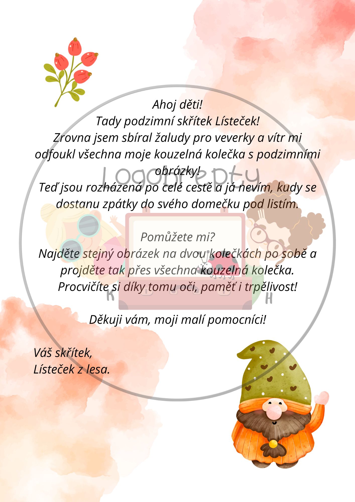 Děti hledají stejné obrázky na sousedních kartách a postupují po cestičce z podzimních symbolů až do cíle.