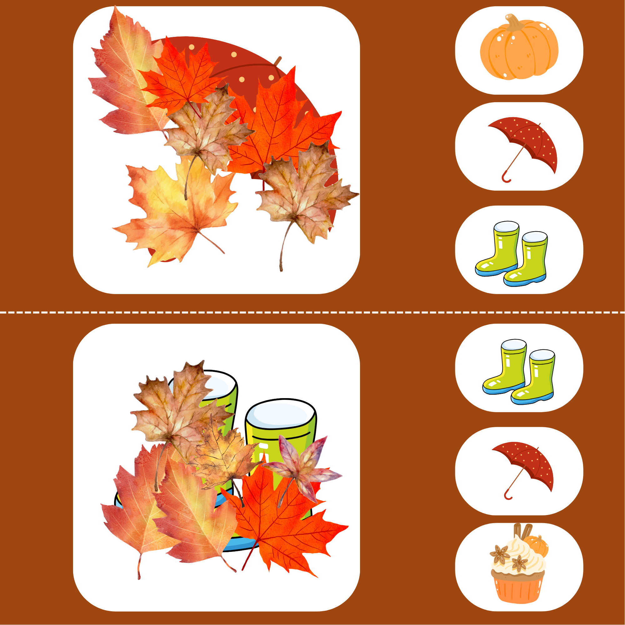 - Detektivní hra: Děti zkoumají kartu, kde je pod listím schovaný jen malý kousek předmětu. Musí uhodnout, o jaký předmět jde.