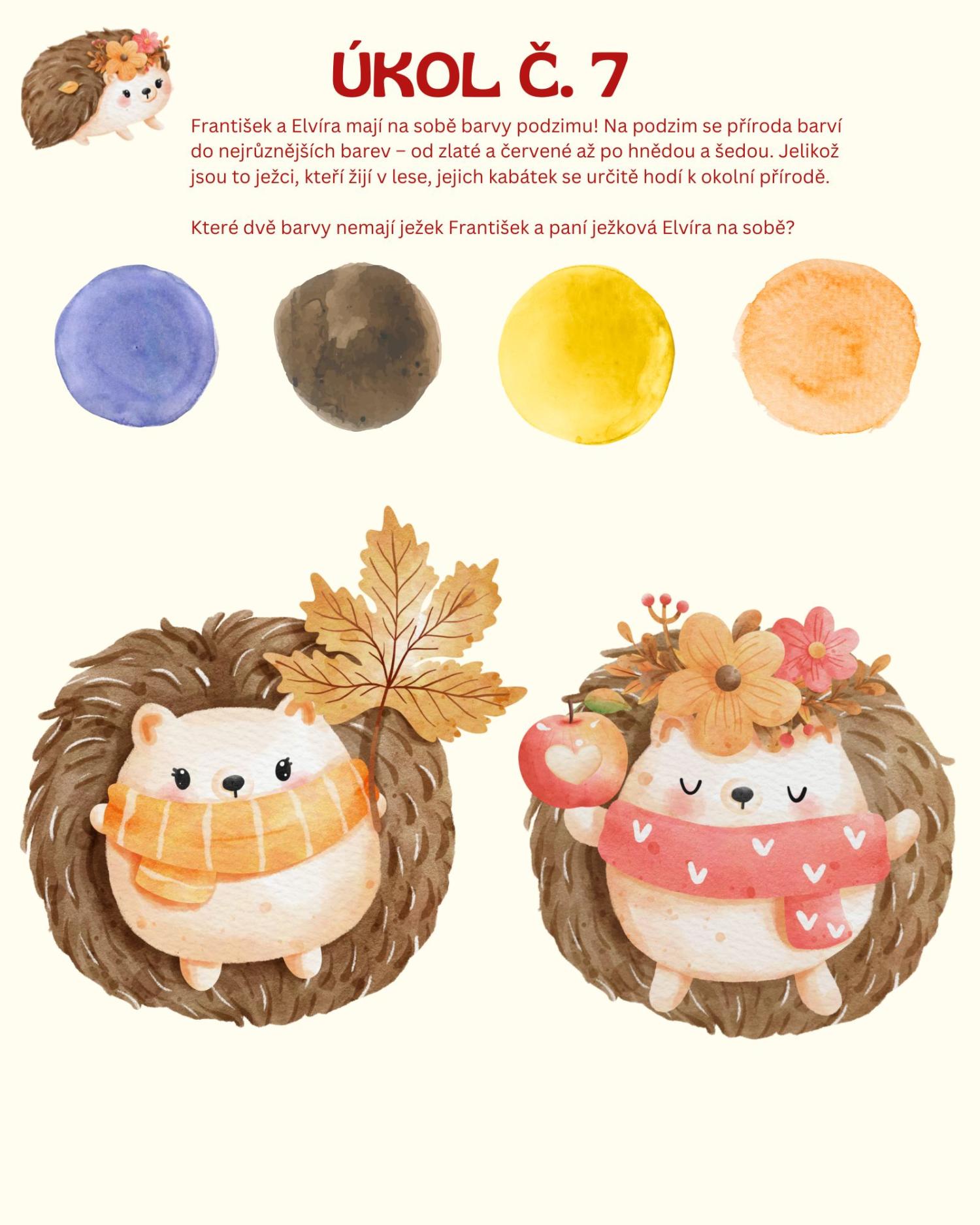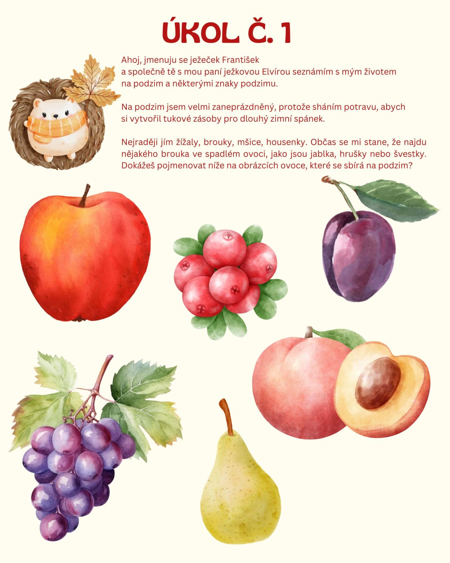 -motivační příběh ježečka Františka a paní ježkové Elvíry u jednotlivých úkolů (ne u všech)