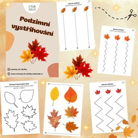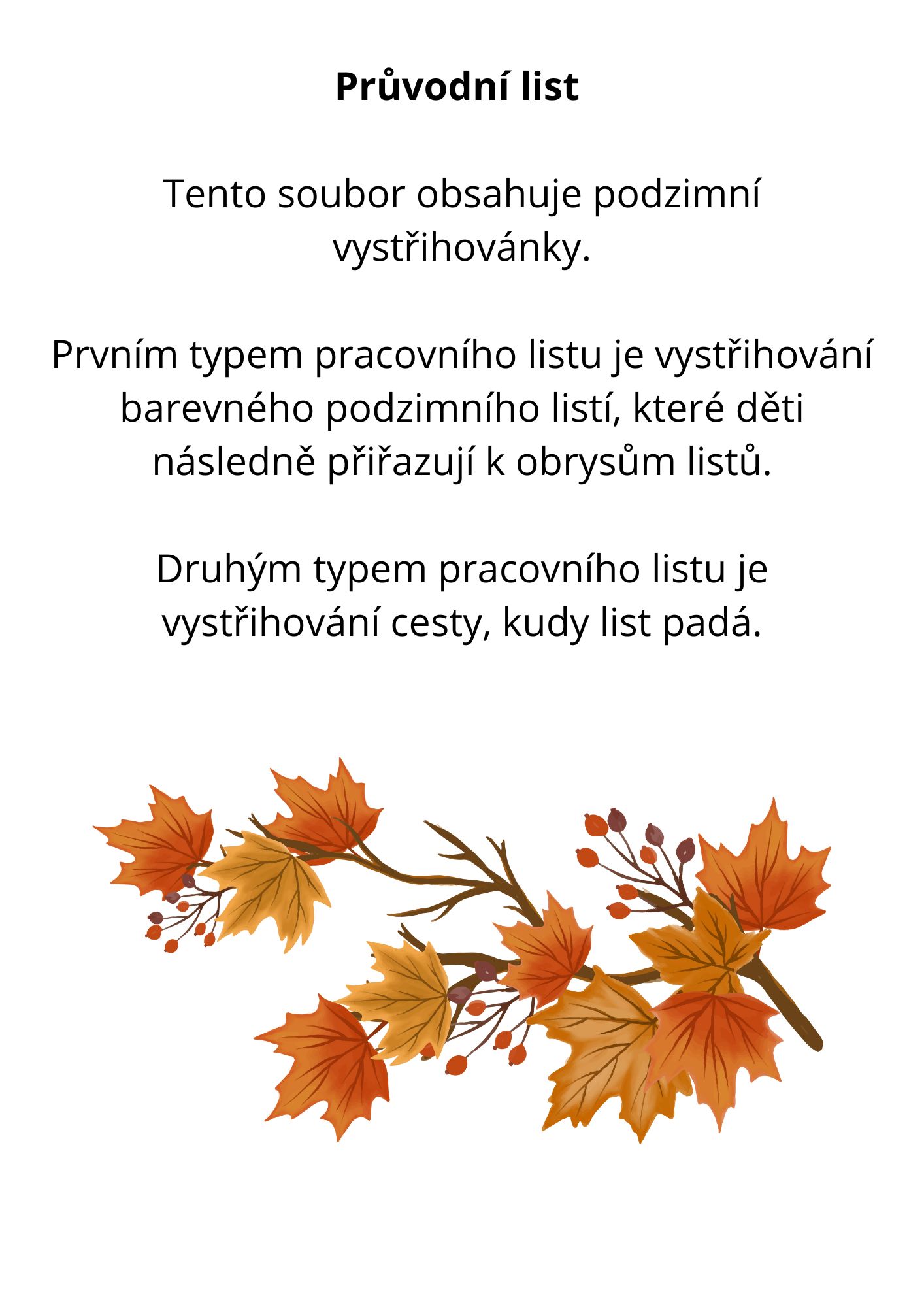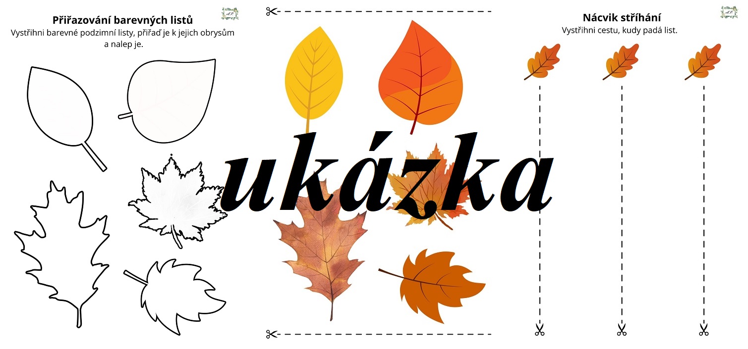 Prvním typem pracovního listu je vystřihování barevného podzimního listí, které děti následně přiřazují k obrysům listů.