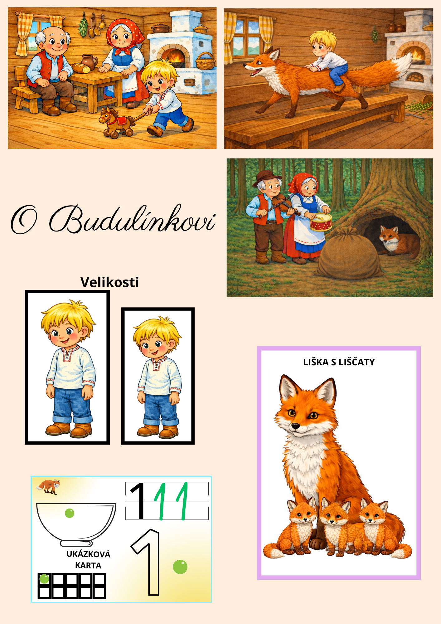 - text pohádky o Budulínkovi + demonstrační obrázky k pohádce
