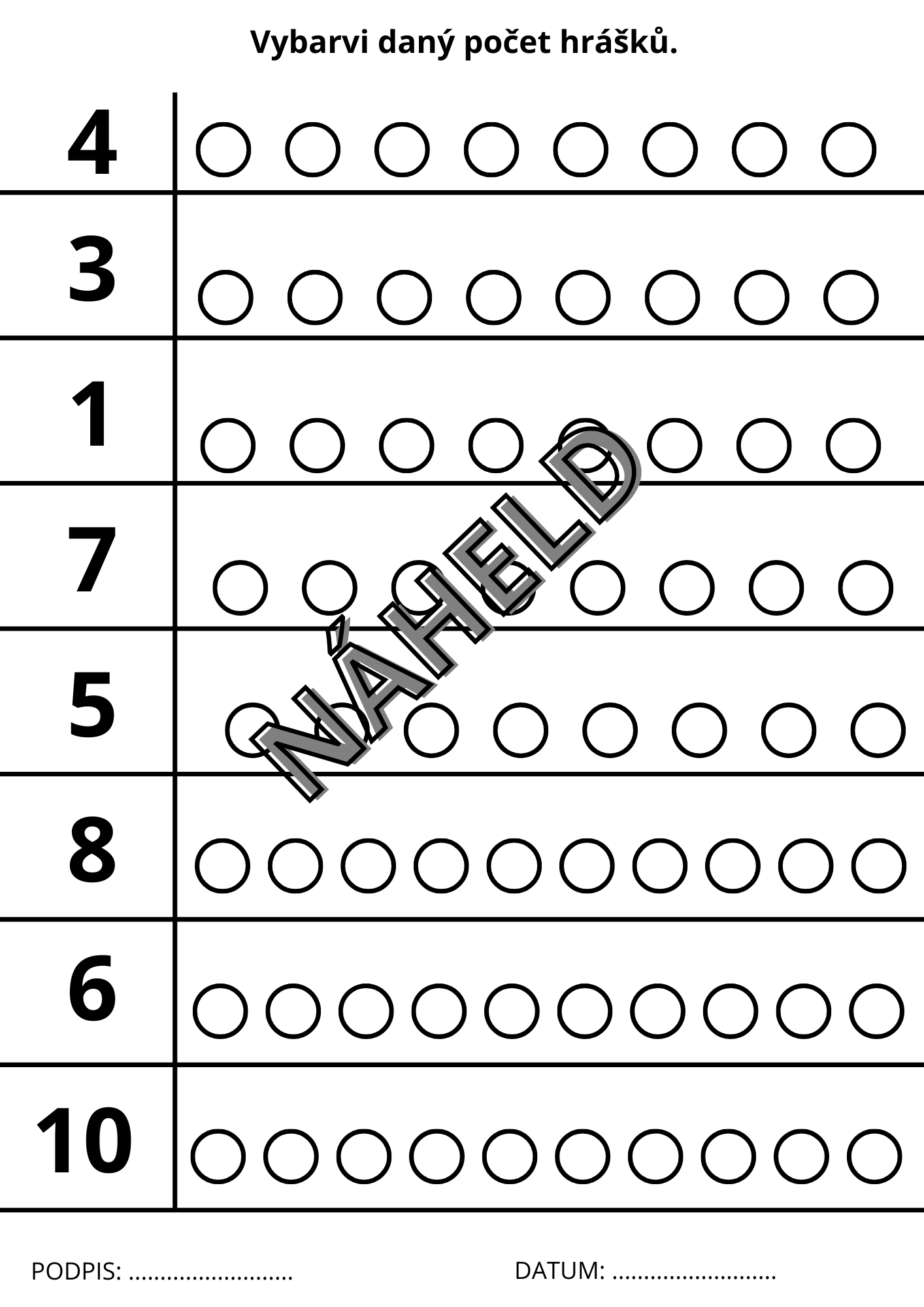 - tvoření hrášku z plastelíny podle předlohy a daného počtu