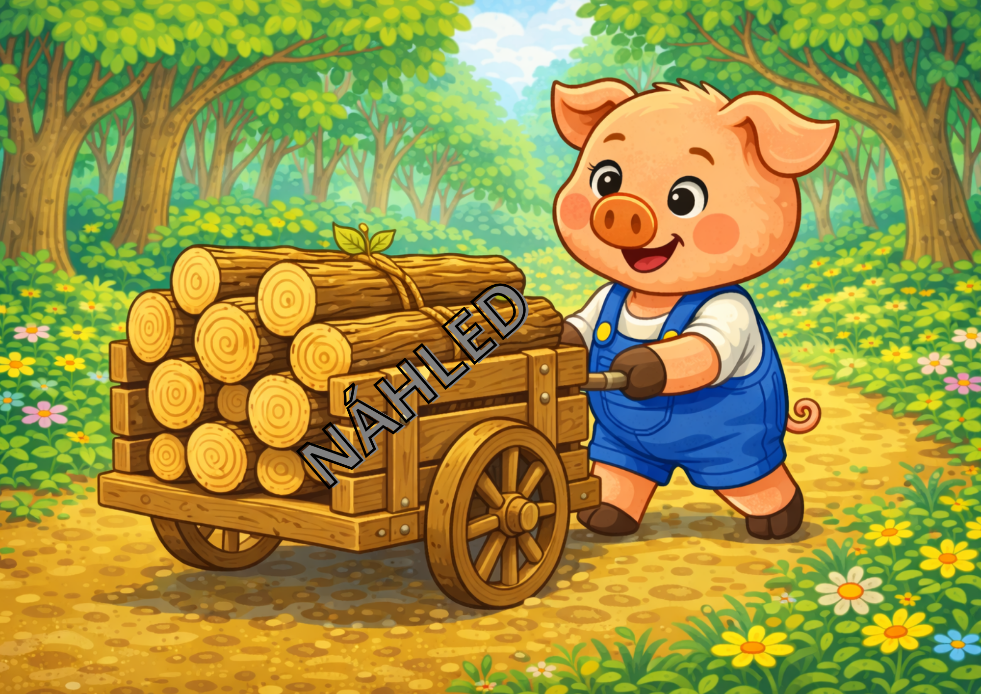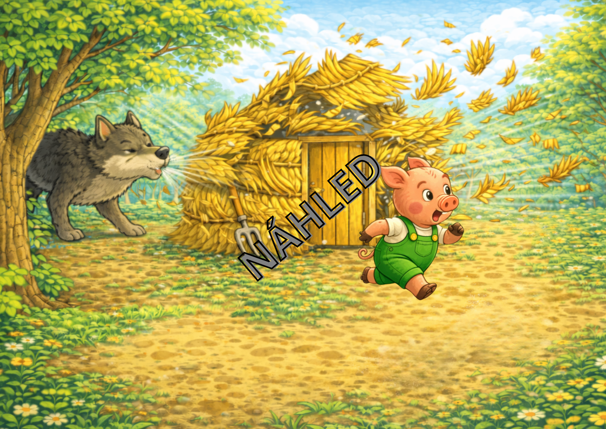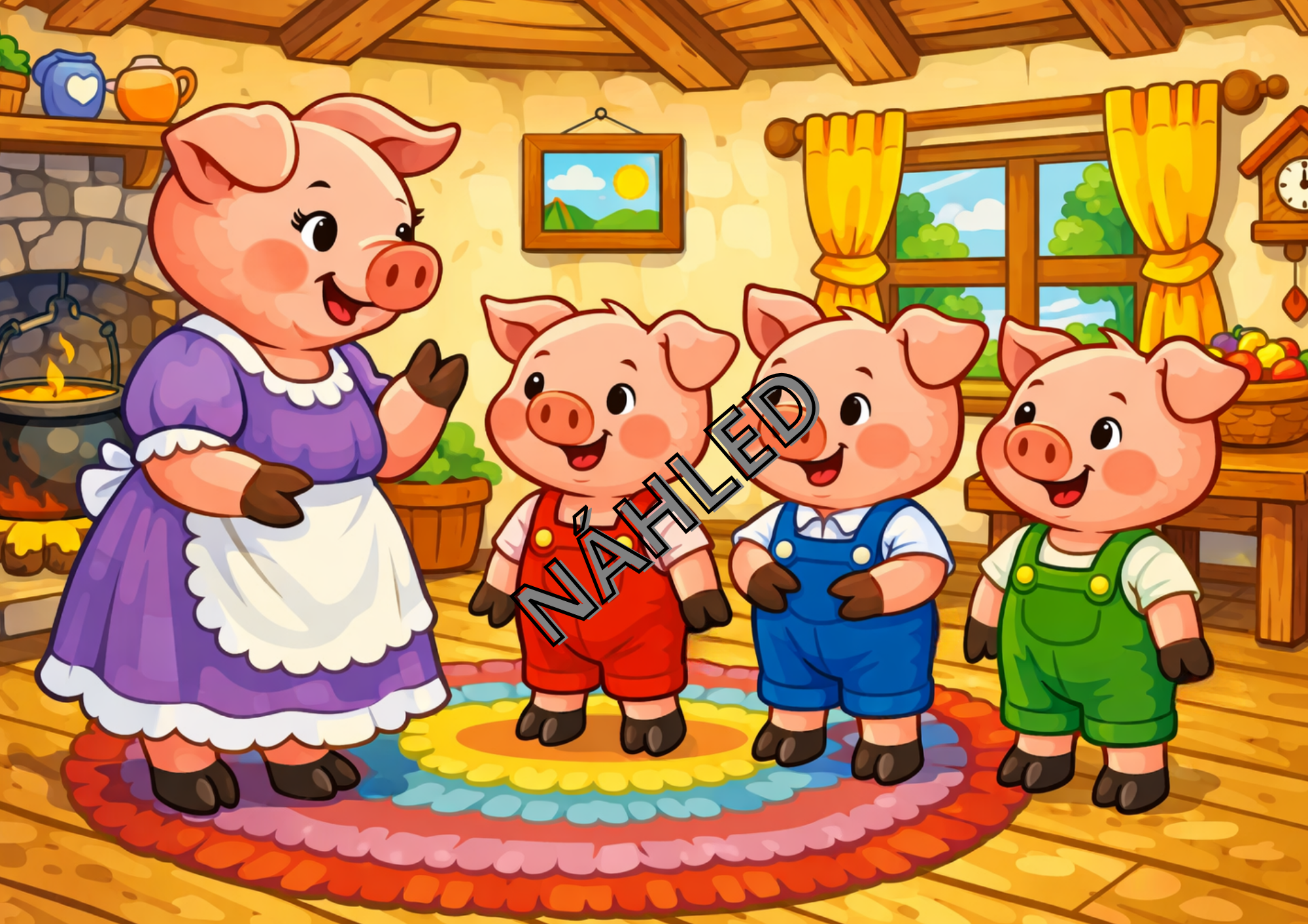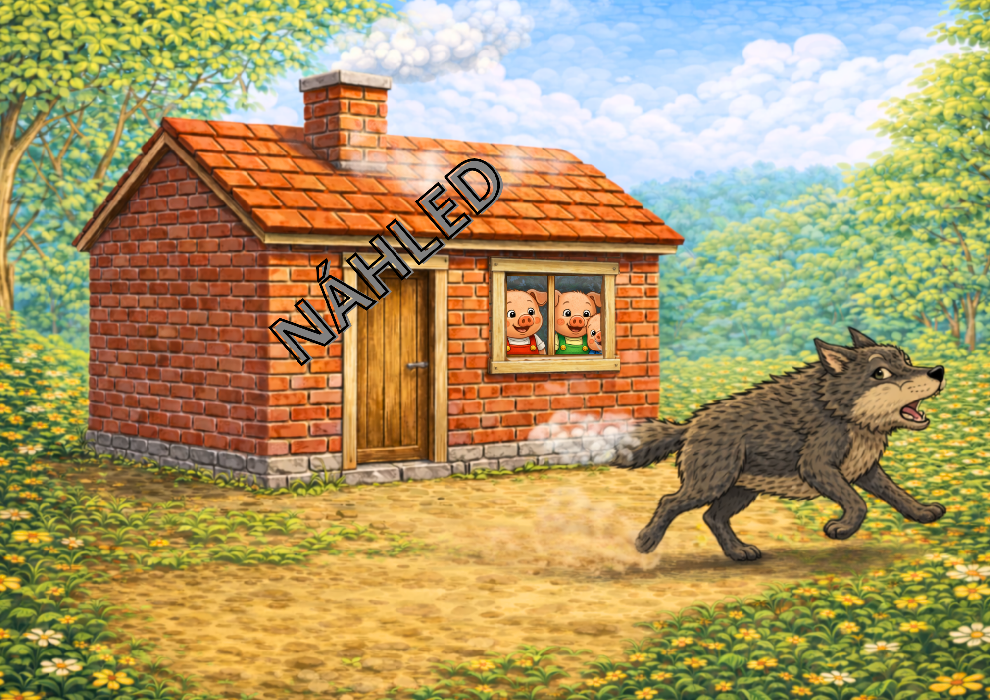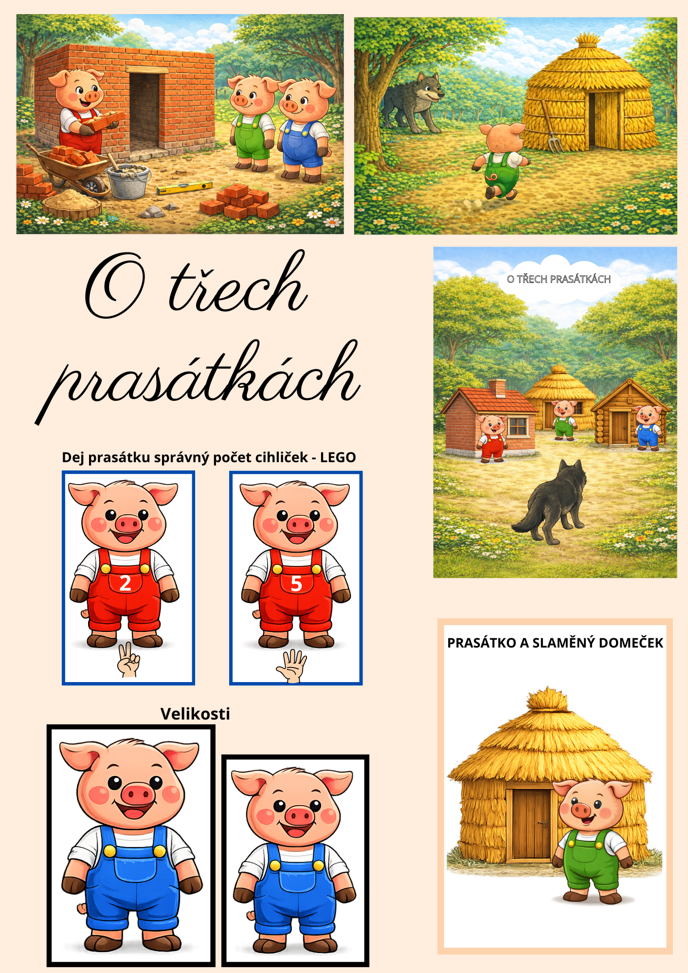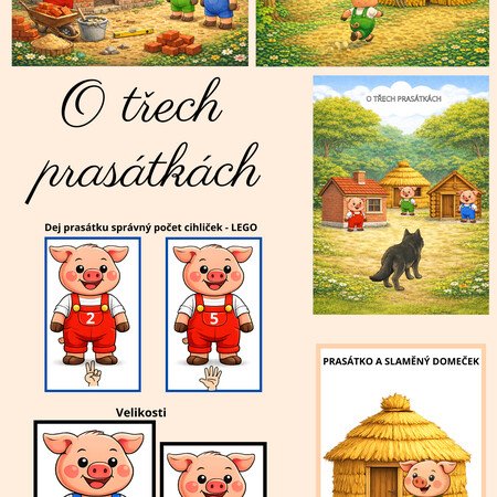 - demonstrační obrázky tří prasátek, jejich domečků a vlka