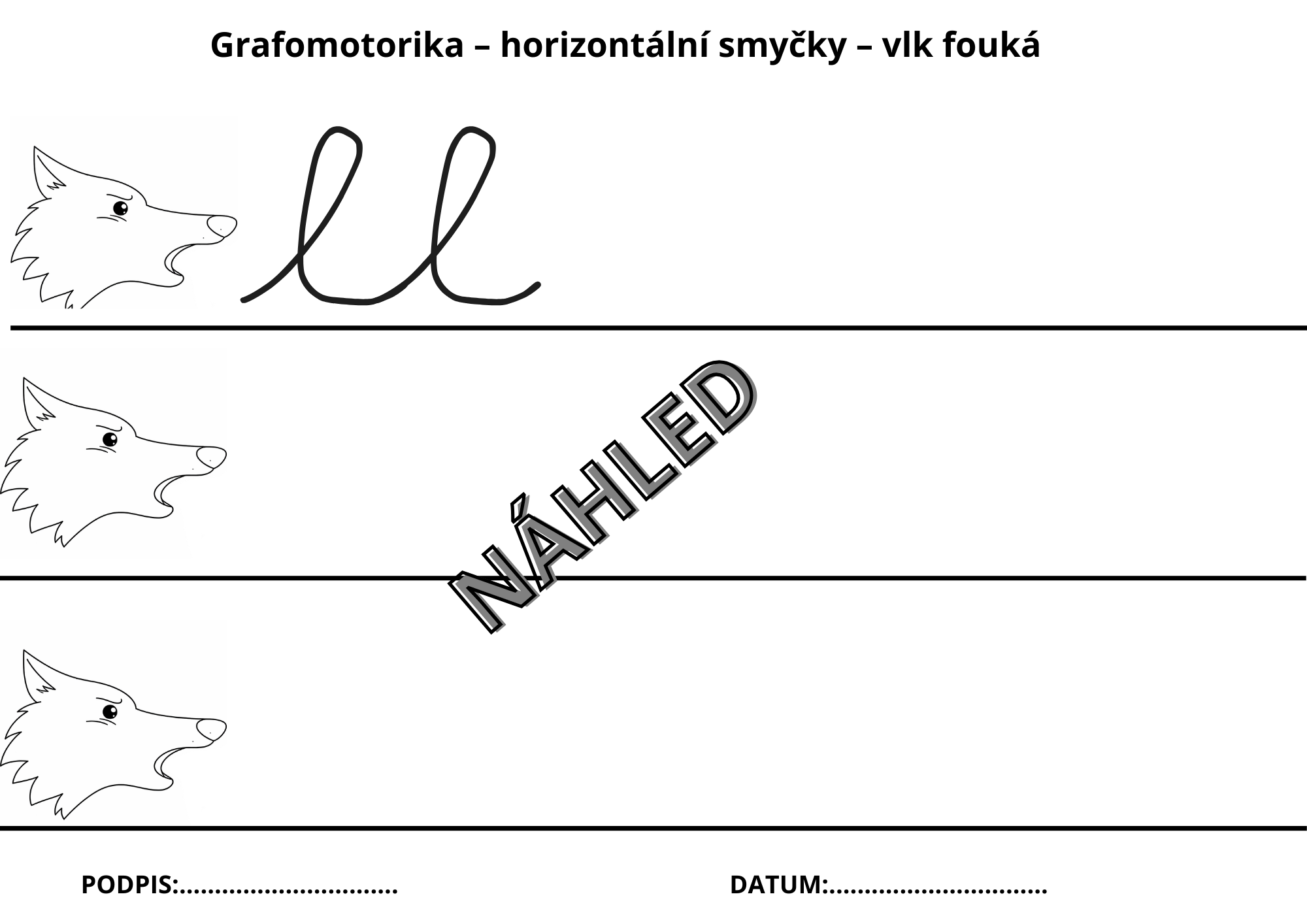 - grafomotoriku – nakresli vlkovi zuby; horizontální smyčky (vlk fouká)