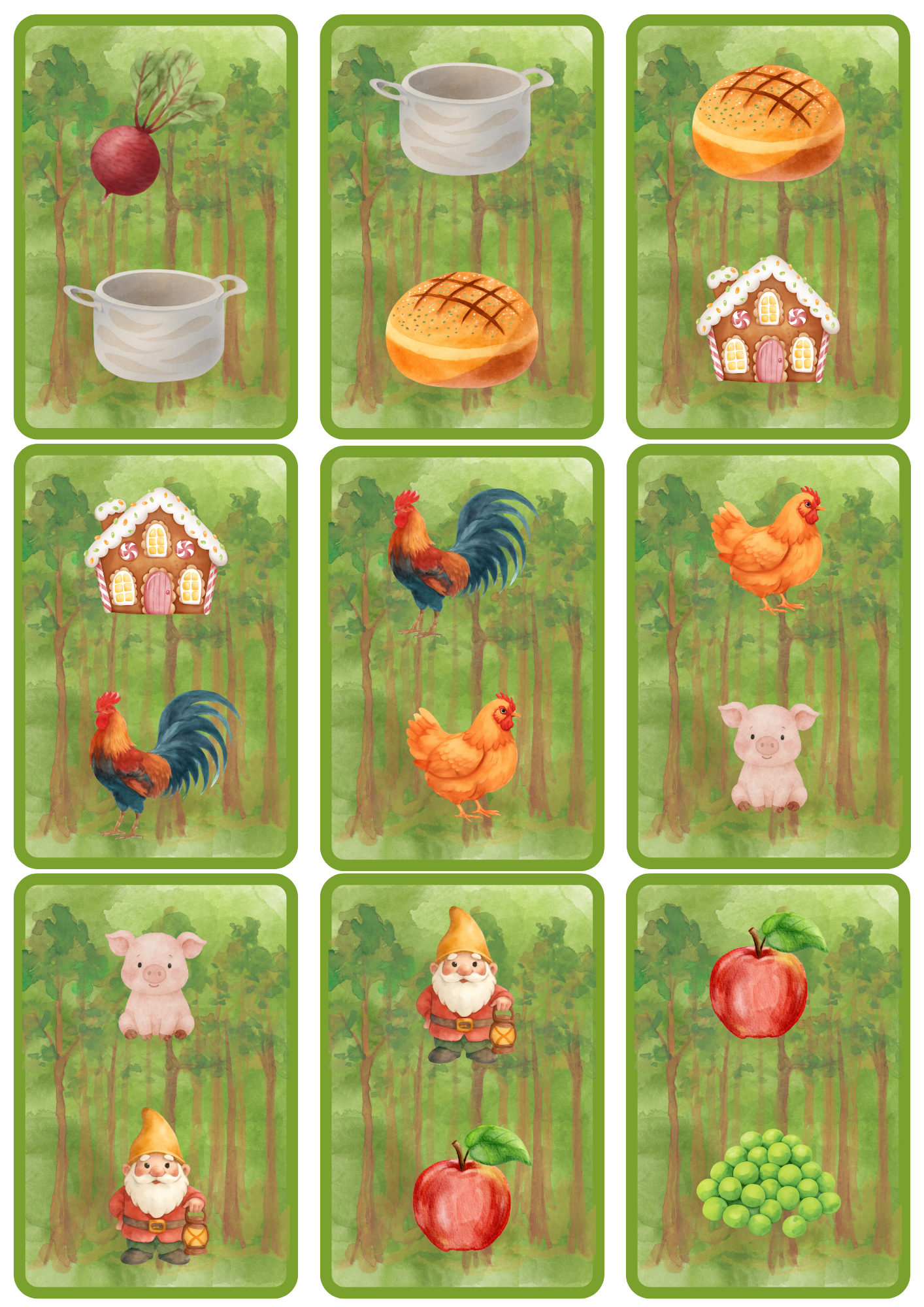 Materiál lze využít také jako klasické pexeso (při tisku 2×). Součástí materiálu je také hra „Já mám, kdo má“. Aktivita rozvíjí zrakové vnímání, pozornost, logické myšlení i slovní zásobu.