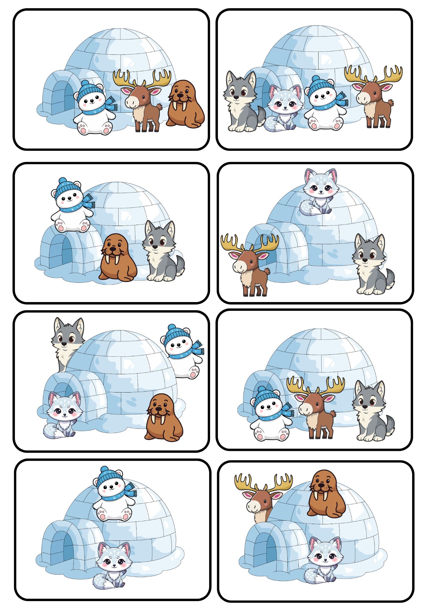 – iglú i zvířátka jsou součástí balíčku na samostatných stránkách k vytištění a vystřižení.