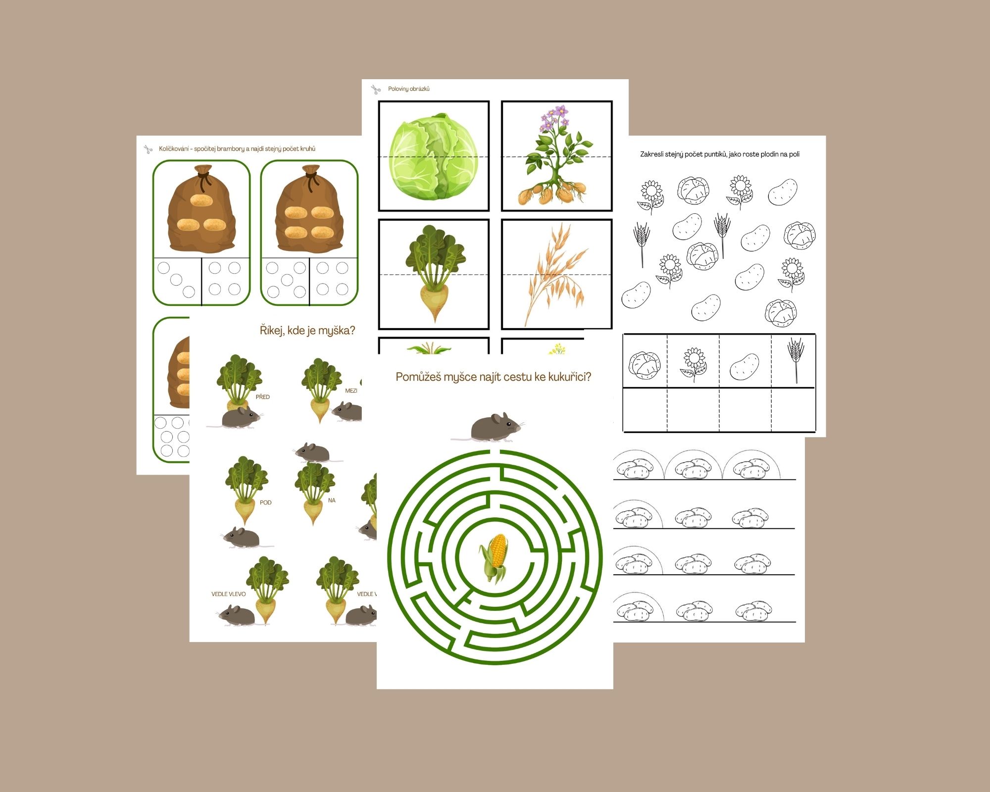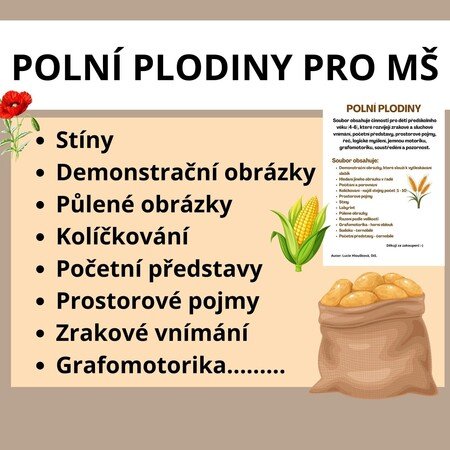Soubor obsahuje činnosti pro děti předškolního věku (4-6), které rozvíjejí zrakové a sluchové vnímání, početní představy, prostorové pojmy, řeč, logické myšlení, jemnou motoriku, grafomotoriku, soustředění a pozornost.