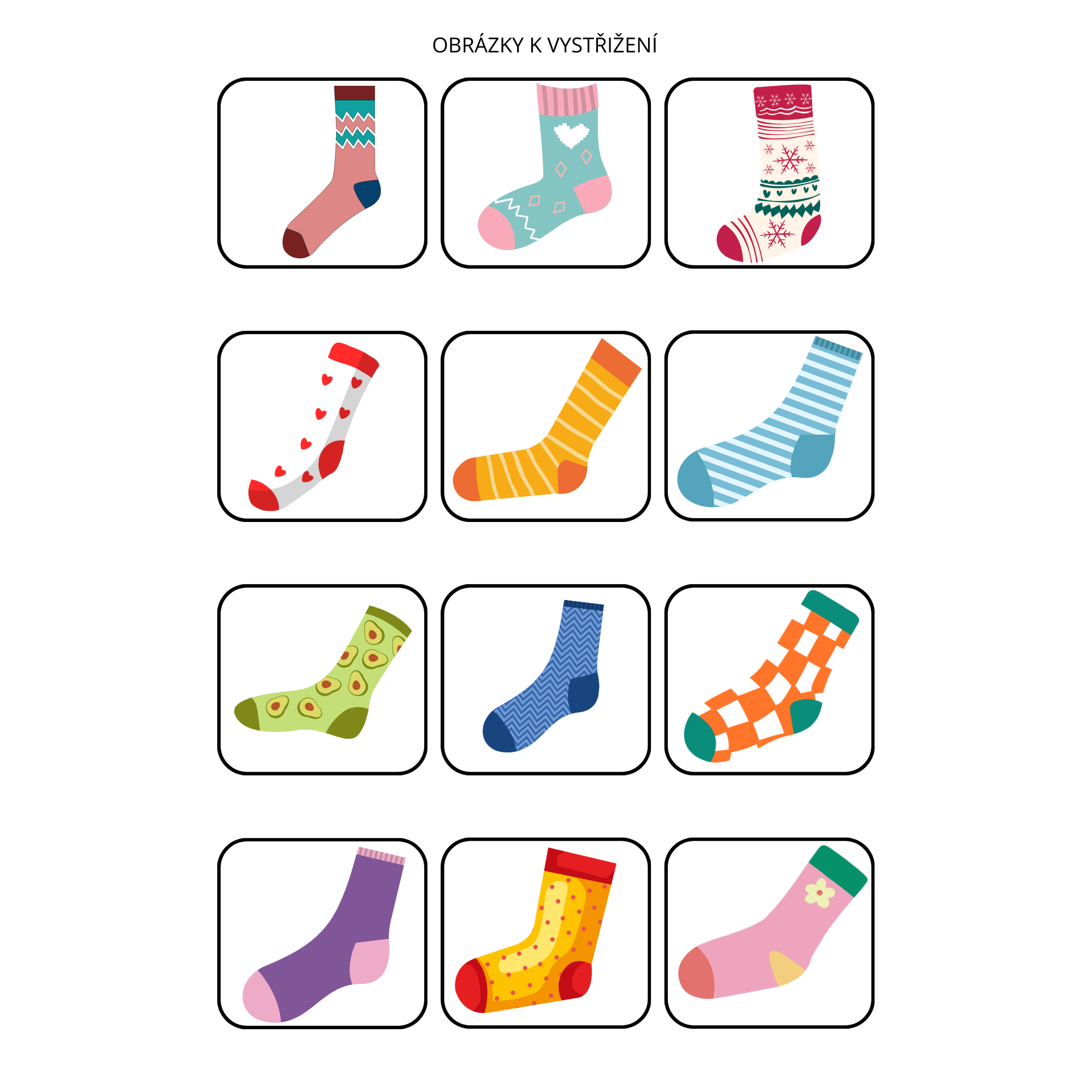 Děti si berou jednu barevnou ponožku a na šabloně musí najít přesný obrys (stín), kam druhá ponožka z páru patří. Přiřazují tak ponožky k jejich stínům podle tvaru a barvy.