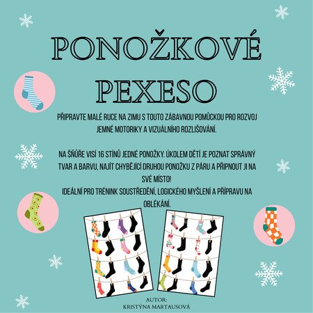 Hledáte efektivní pomůcku pro rozvoj jemné motoriky, koncentrace a vizuálního vnímání? Tyto Ponožky ve stínu jsou perfektní didaktická aktivita pro děti předškolního a mladšího školního věku!