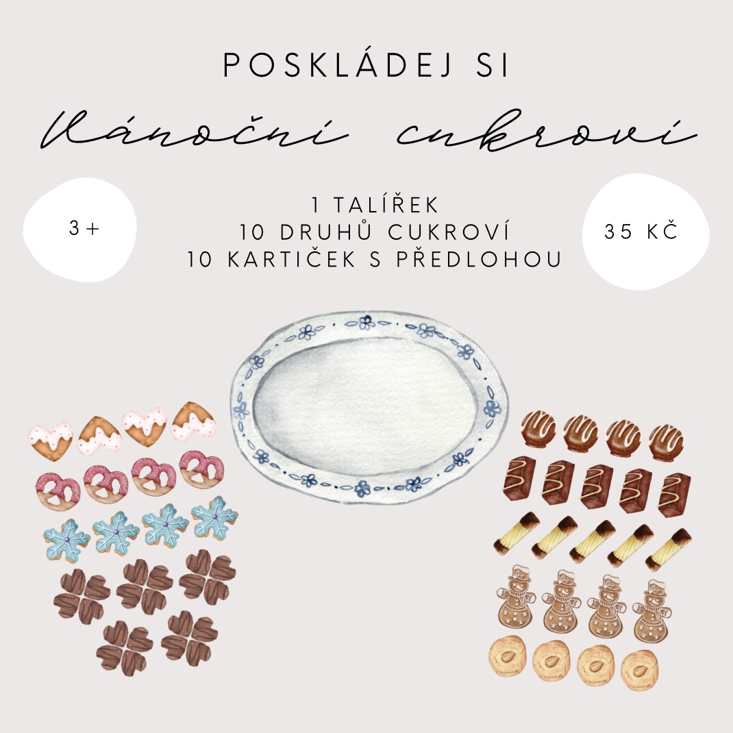 Děti si mohou podle své fantazie nebo s pomocí předlohy poskládat vánoční talíř plný lahodného cukroví.