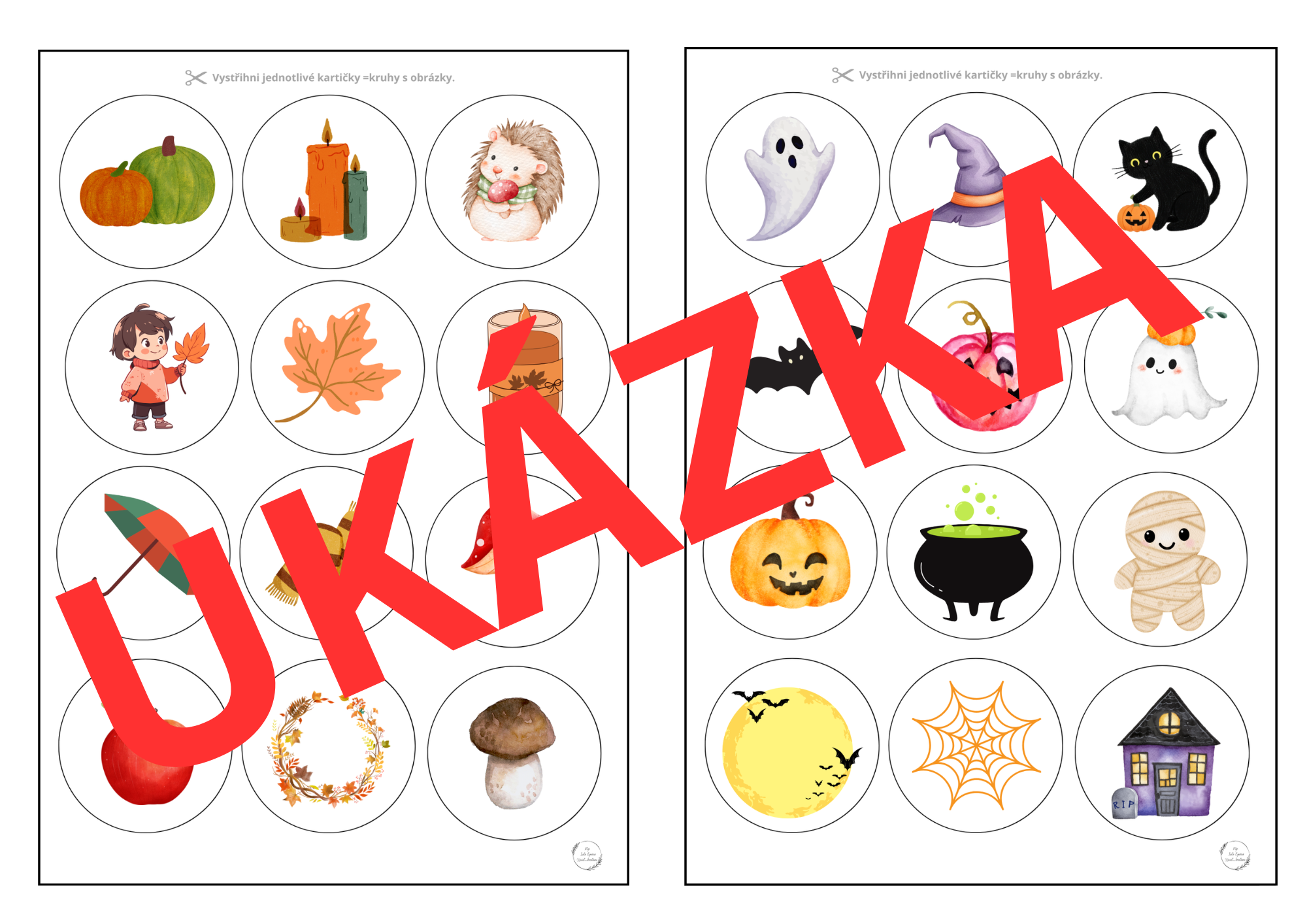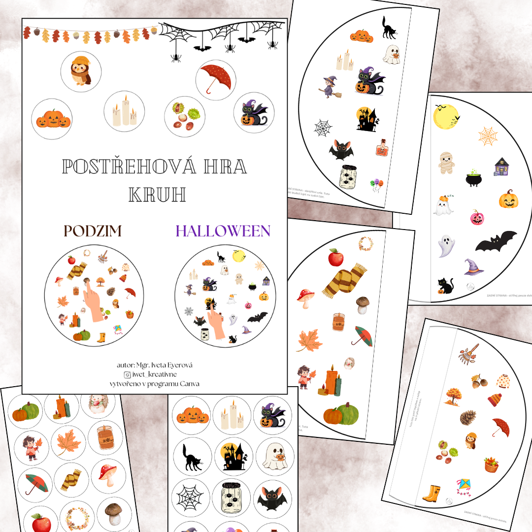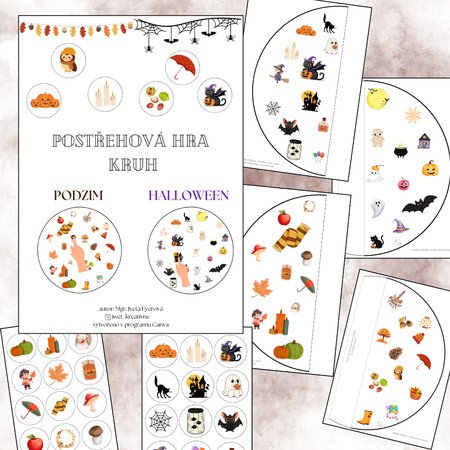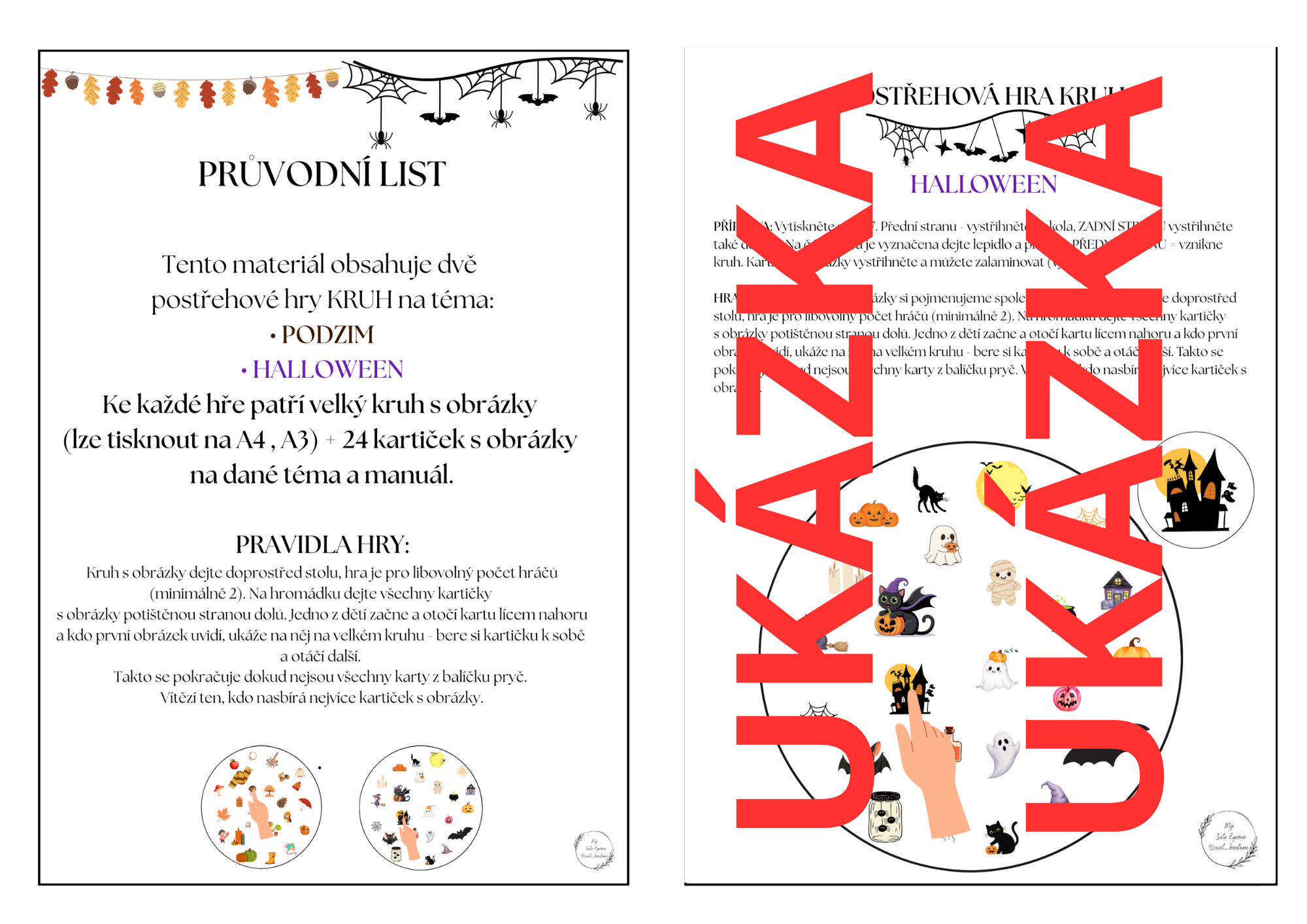 Ke každé hře patří velký kruh s obrázky (lze tisknout na A4 , A3) + 24 kartiček s obrázky na dané téma a manuál.