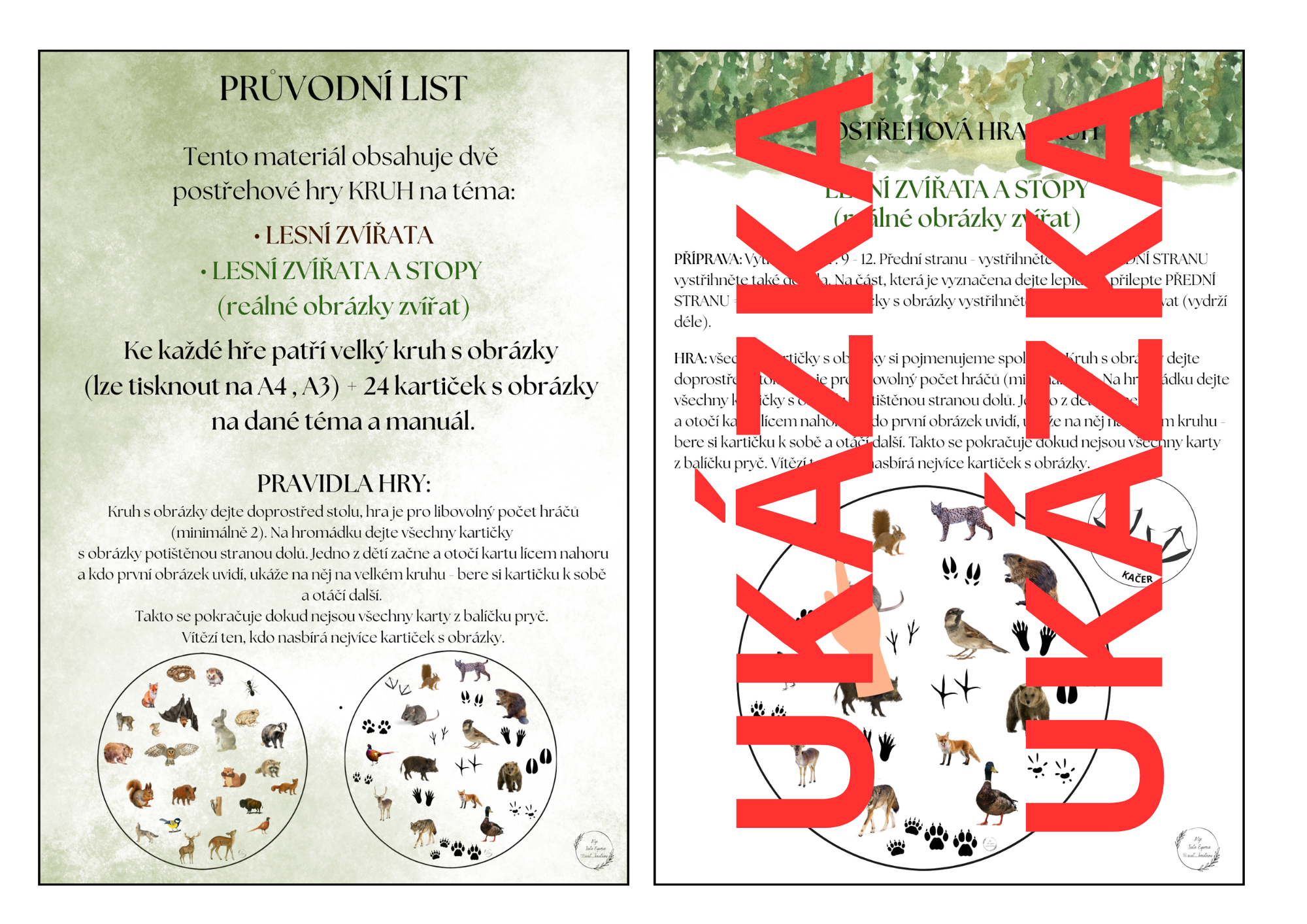 Ke každé hře patří velký kruh s obrázky (lze tisknout na A4 , A3) + 24 kartiček s obrázky na dané téma a manuál.
