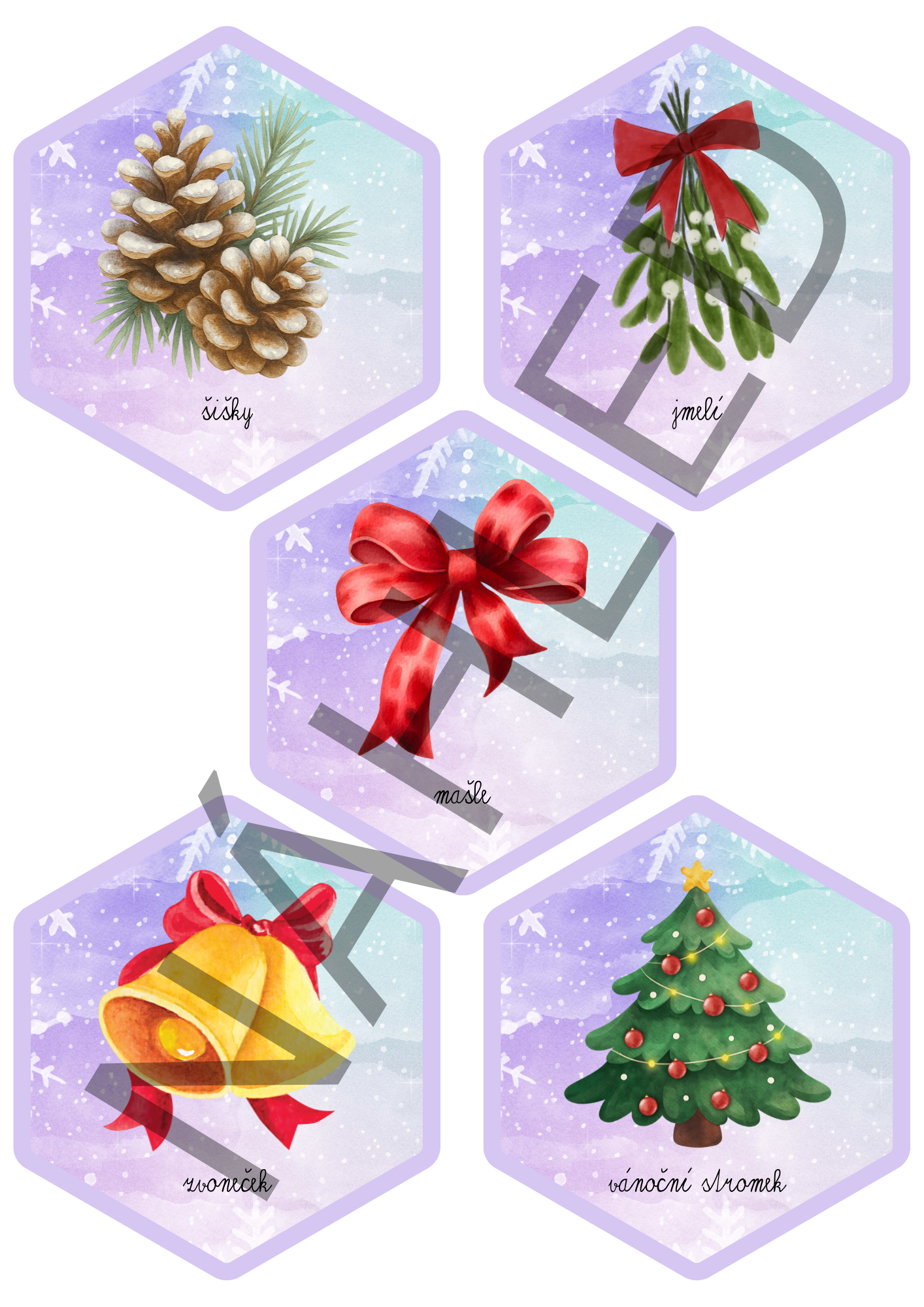 Obsah: 45 obrázkových karet se zimní a vánoční tématikou