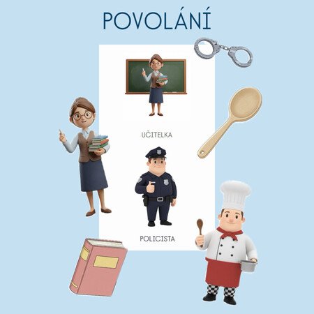 - 8x kartičky s názvem povolání a obrázkem