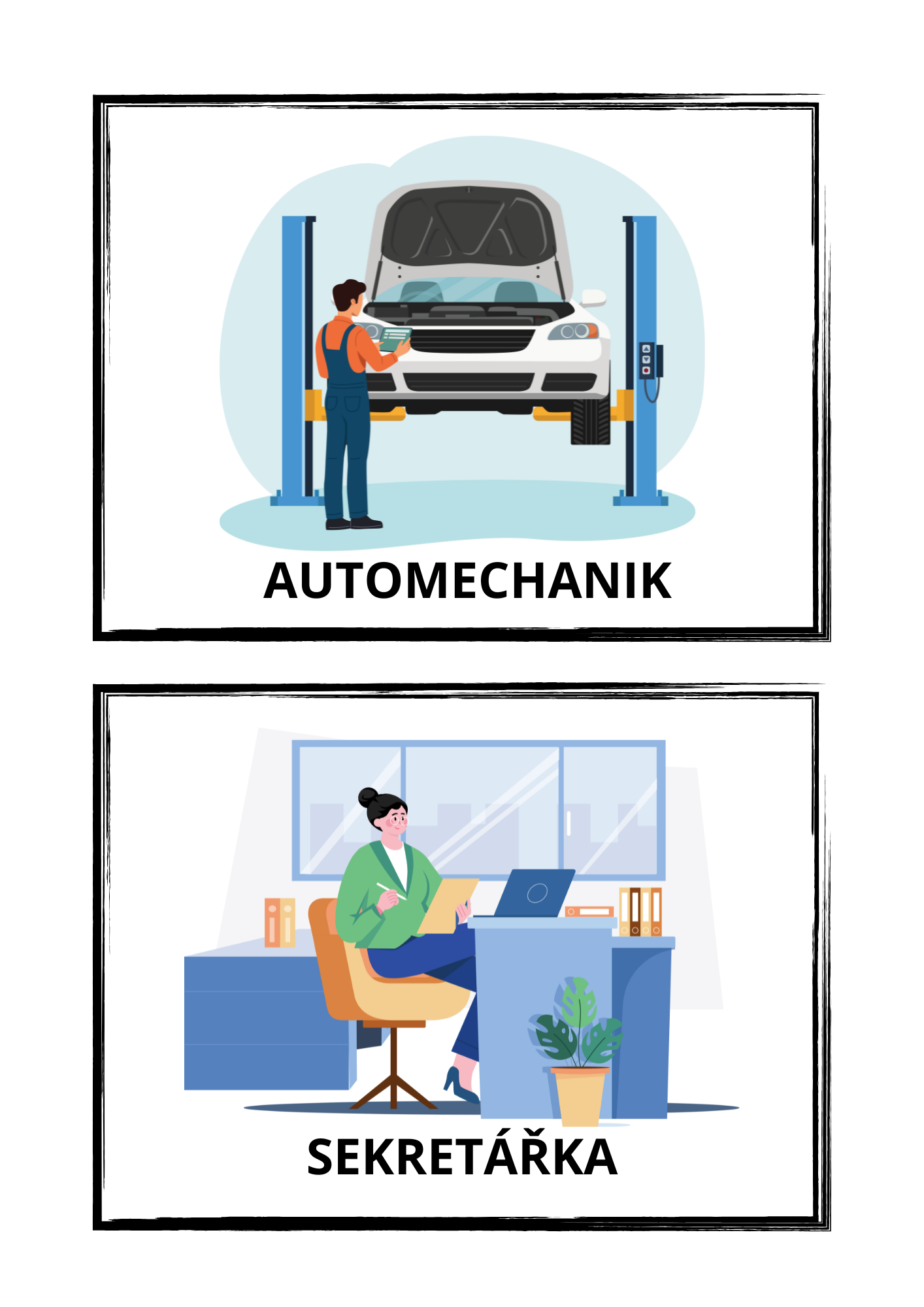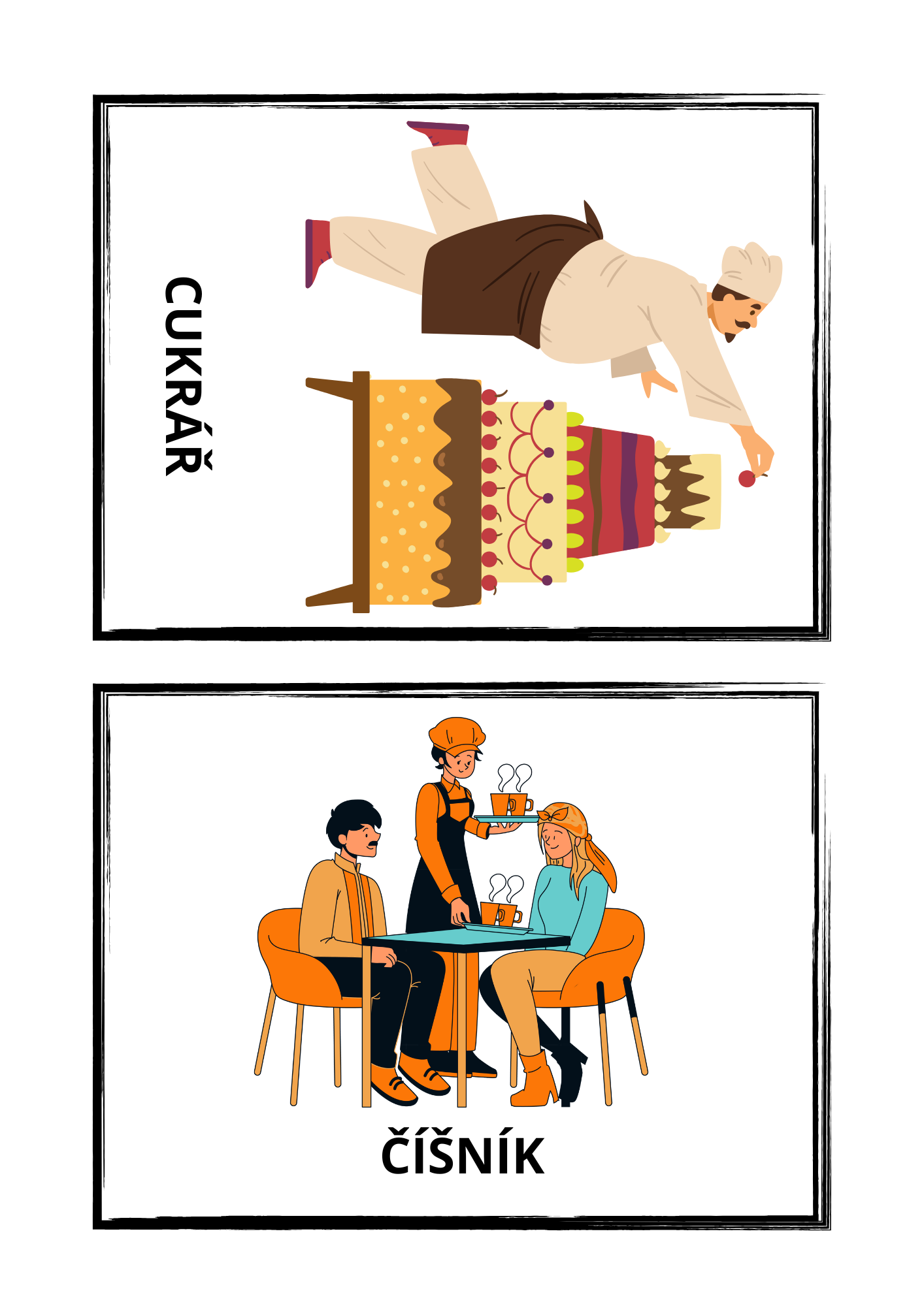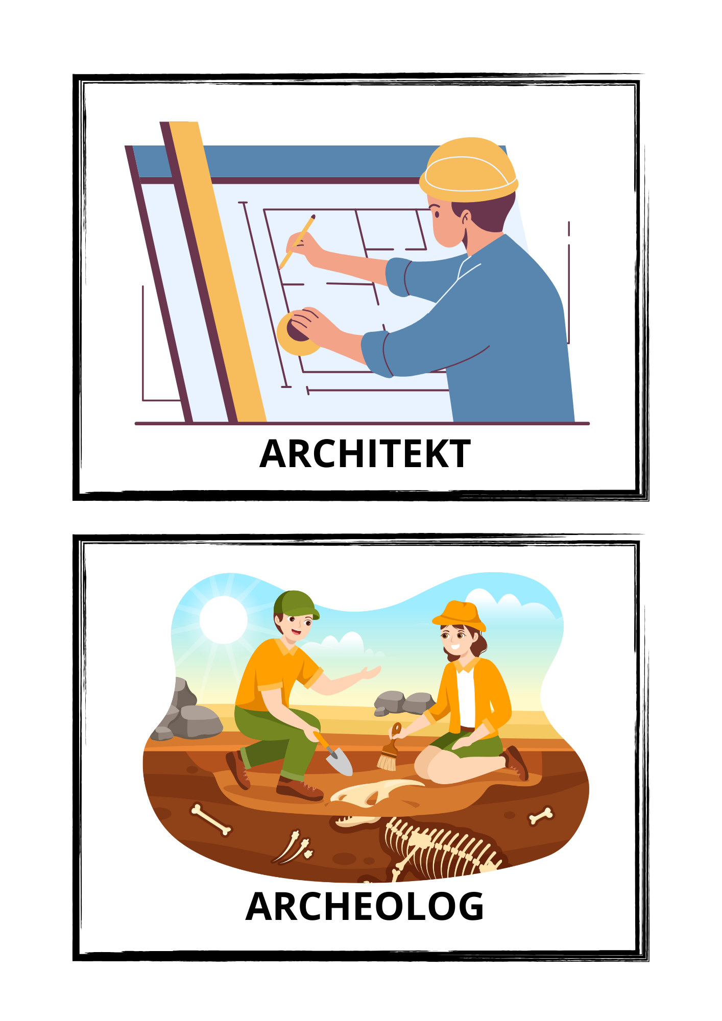 Soubor obsahuje obrázky 40 druhů povolání a jejich stíny. Kartičky lze použít k přiřazování nebo jako pexeso