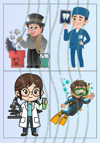 Materiál obsahuje 32 kartiček s různým povoláním.