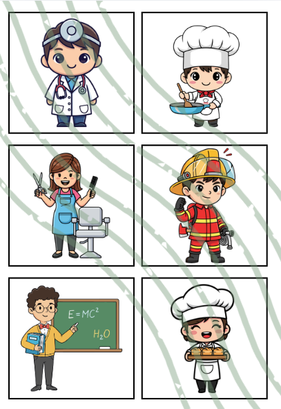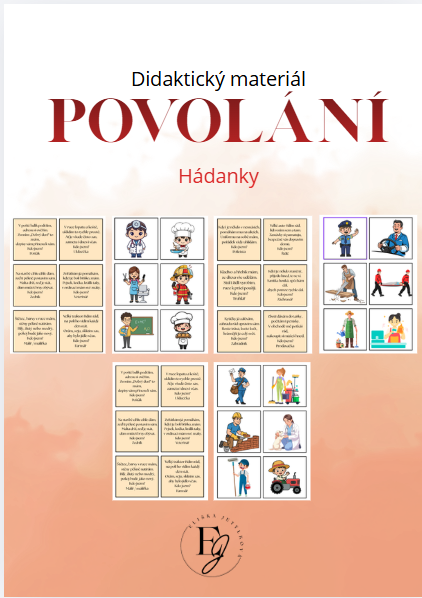 Materiál obsahuje 32 kartiček s různým povoláním. Kartičky vytiskněte, zalaminujte a vystřihněte. Zdroj obrázků - canva