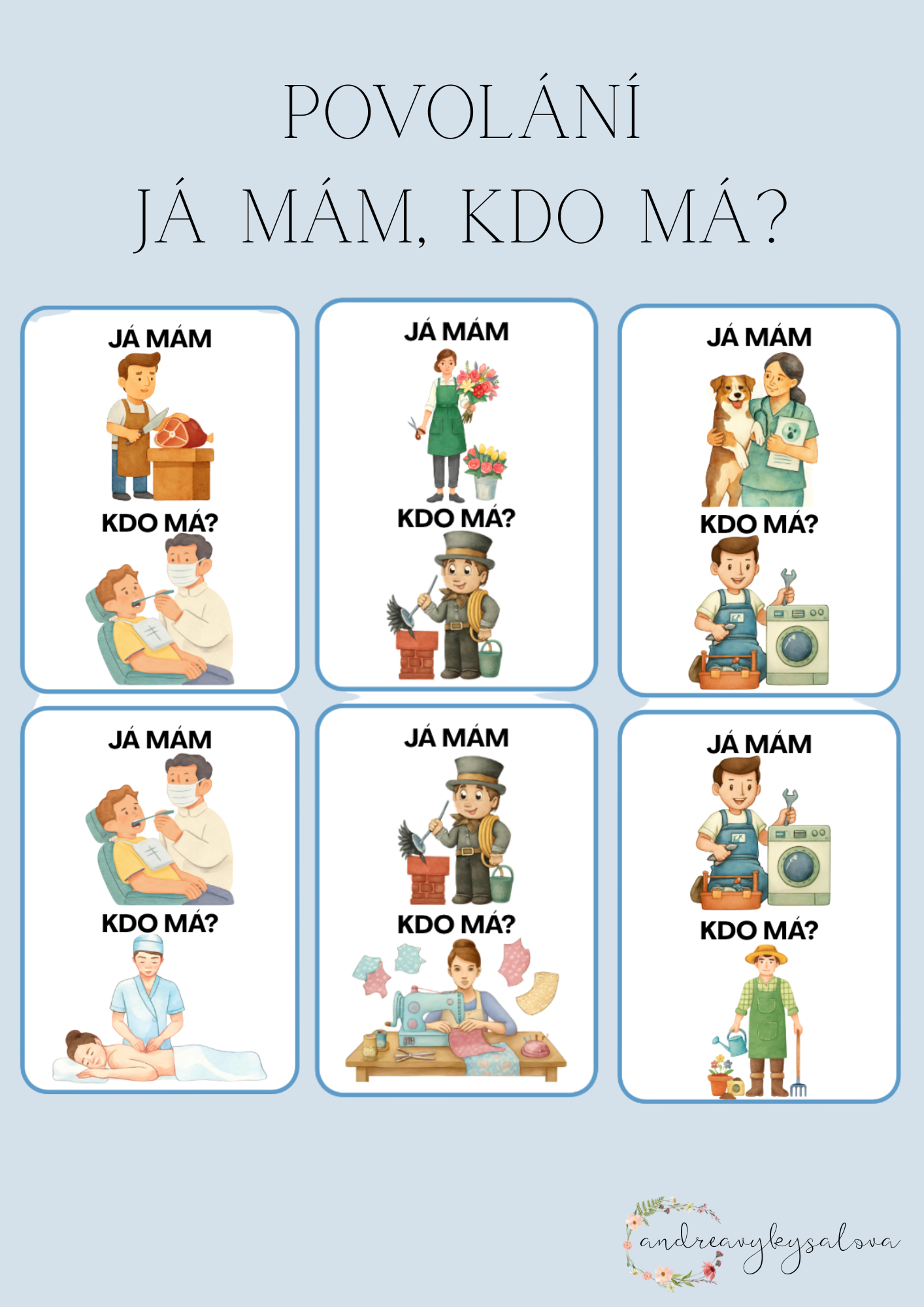 Hra "Já mám, kdo má?" s motivem povolání👩🏫🧑🚒👷♂️ Dohromady je v souboru 30 kartiček.