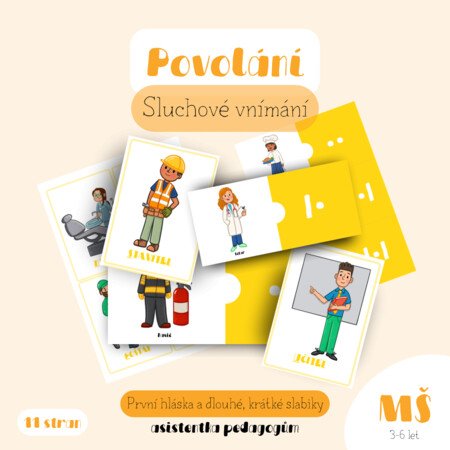 - Děti mají za úkol správně spojit rozstříhané části obrázku. Tato aktivita je určena pro starší děti, které již zvládají vytleskávat slova a určovat, které slabiky jsou krátké a které dlouhé.