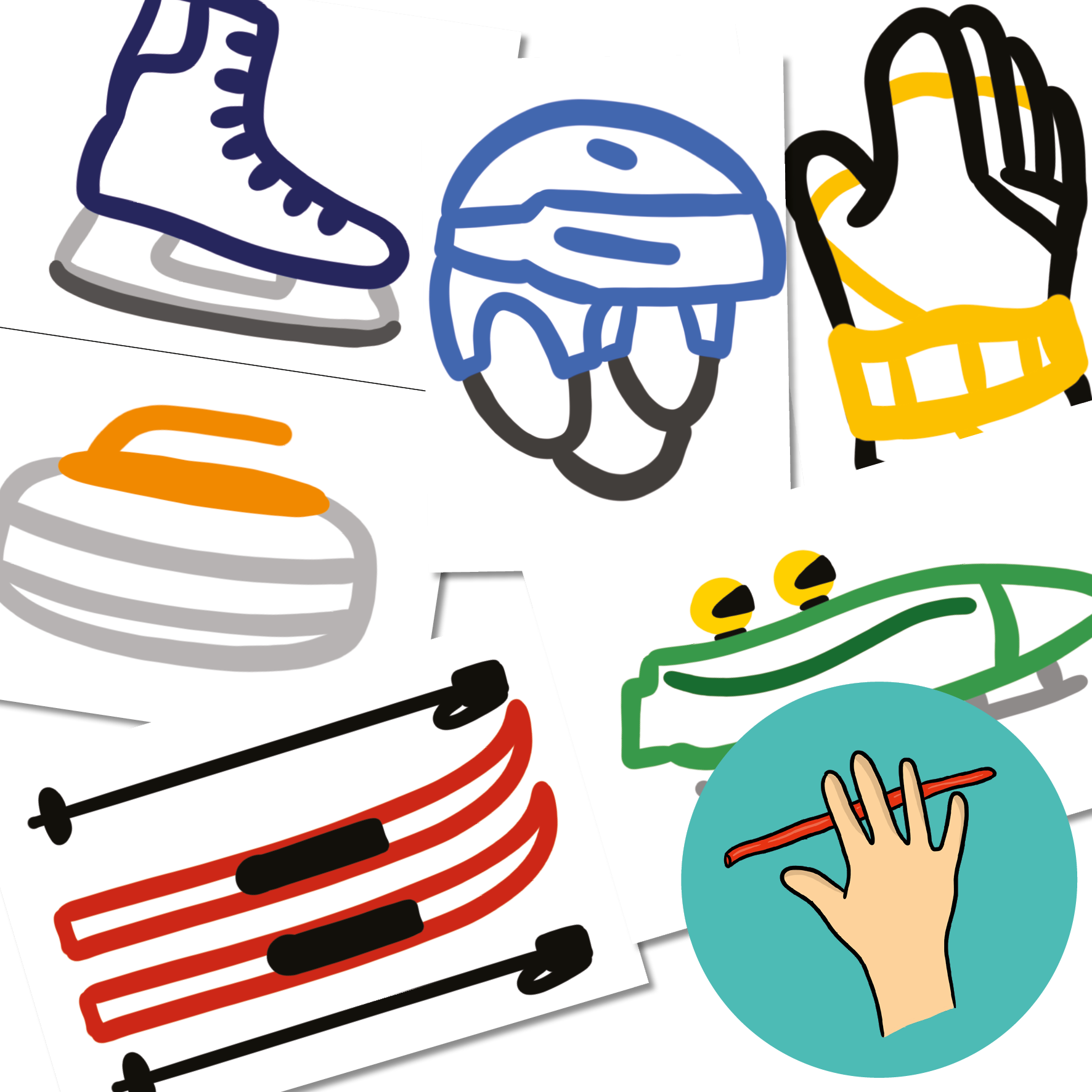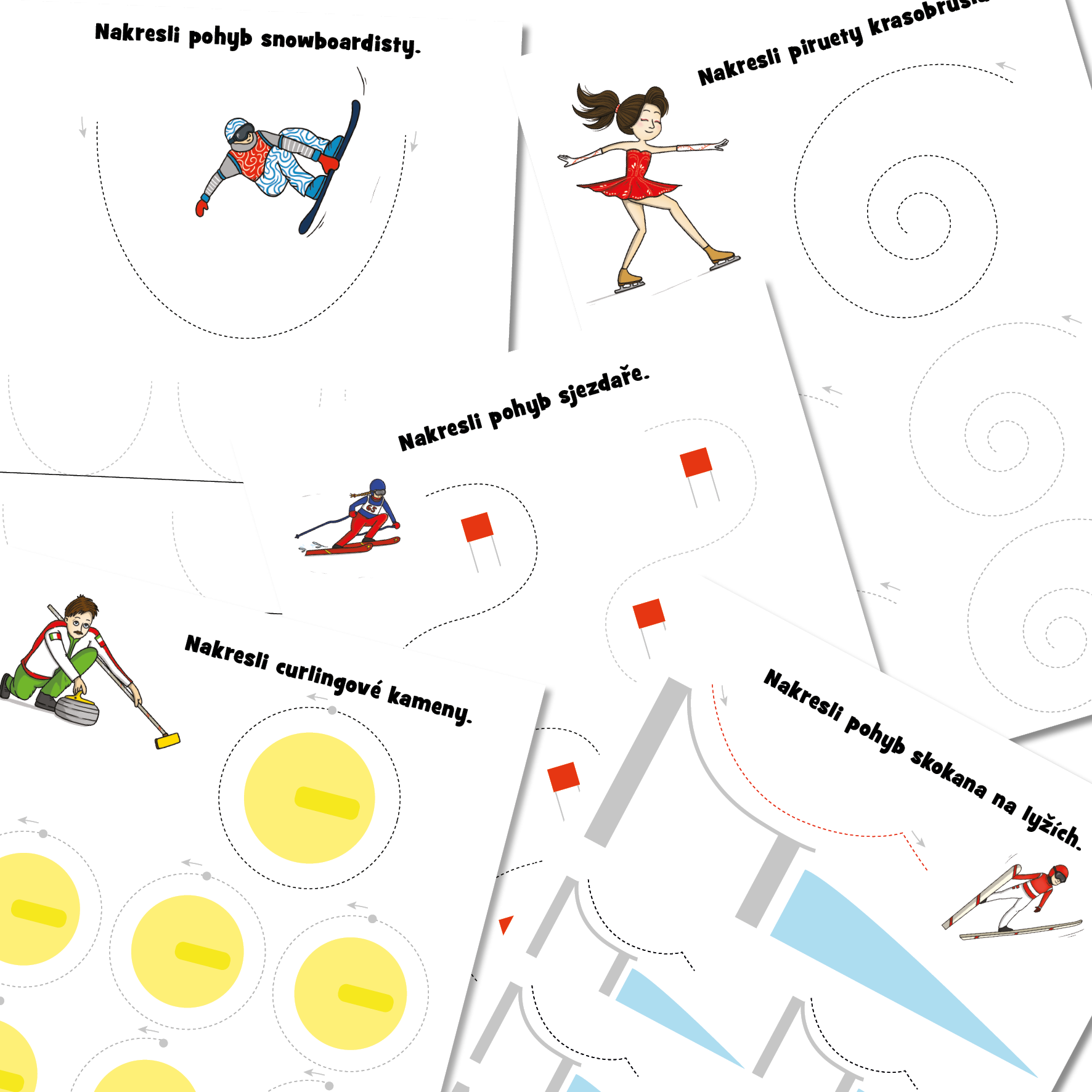 - demonstrační obrázky zimních sportů
