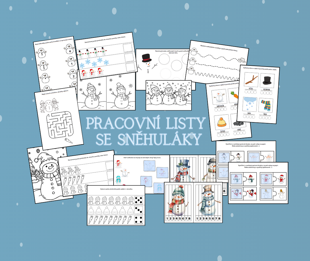 - Celkem 20 pracovních listů a aktivit s motivem sněhuláků