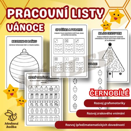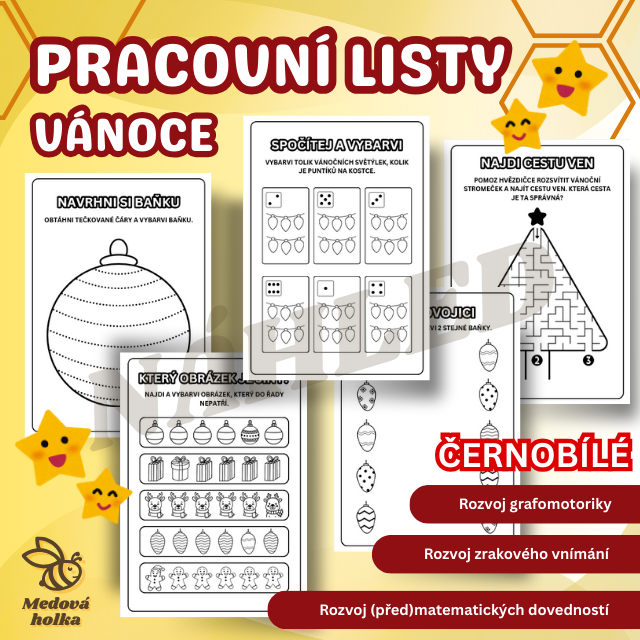 Tento soubor obsahuje 10 pracovních listů se zimní a vánoční tematikou, které jsou připraveny k okamžitému použití. Všechny listy jsou černobílé, takže je stačí jednoduše vytisknou a nejsou potřeba žádné další úpravy ani vystřihování.